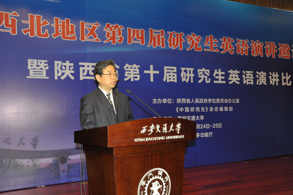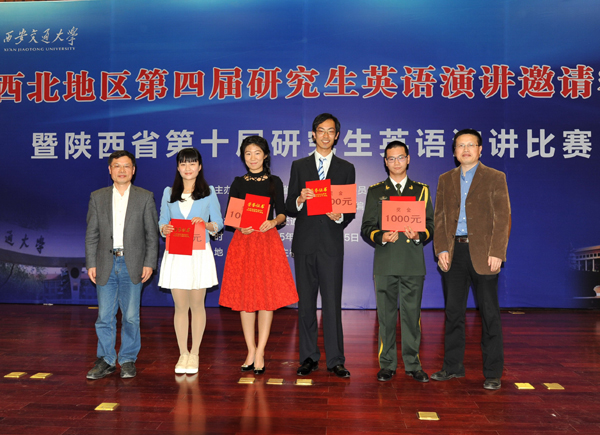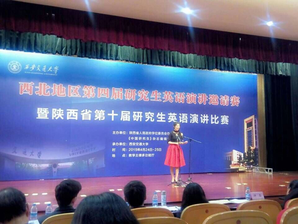 西北地区研究生英语演讲邀请赛暨陕西省研究生英语演讲比赛,是教育部批准实施的全国研究生教育创新计划项目,是教育部西部研究生教育创新平台建设的重要内容。2015年4月24日至25日,西北地区第四届研究生英语演讲邀请赛暨陕西省第十届研究生英语演讲比赛在西安交通大学教学主楼多功能厅举行。