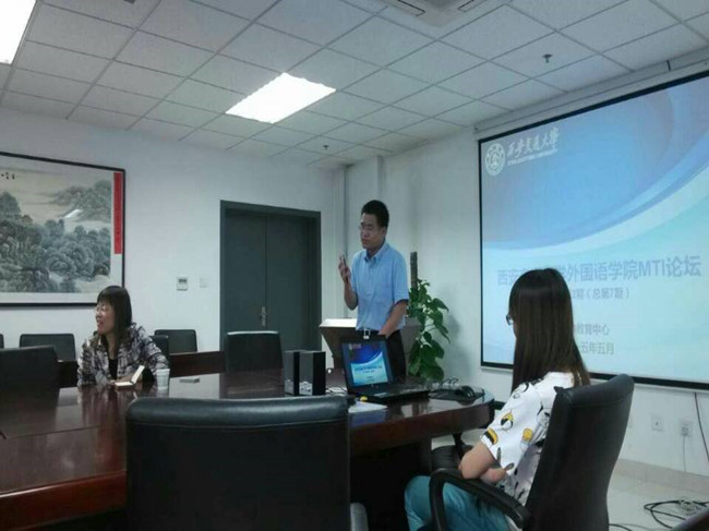 MTI论坛第七期开坛。MTI教育中心主任聂文信副教授、日语系赵蔚青副教授、英语系常虹副教授应邀出席,2014级全体翻译硕士研究生参加了此次论坛。