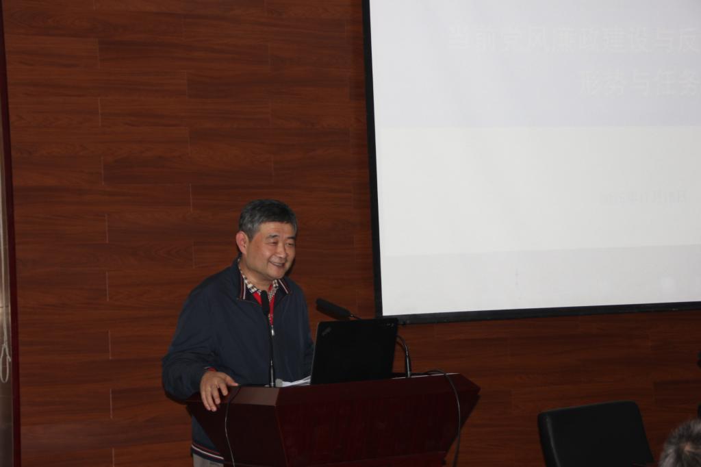 党委在外文楼B-1001报告厅举行党风廉政建设专题党课。全院教工党员、学生支委、各系中心主任参加学习。本课由分党委书记杨小渭主讲,党委副书记张长安主持。