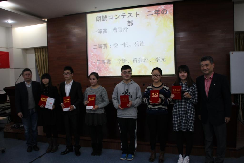 党委副书记、日语系张长安教授,日语系赵刚教授为获奖学生颁奖。