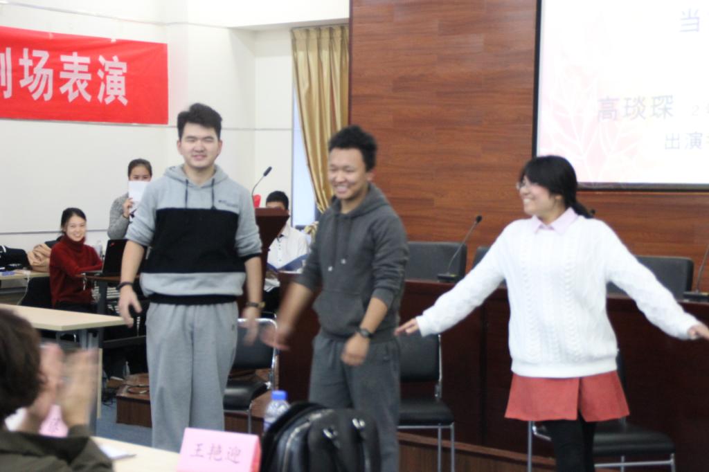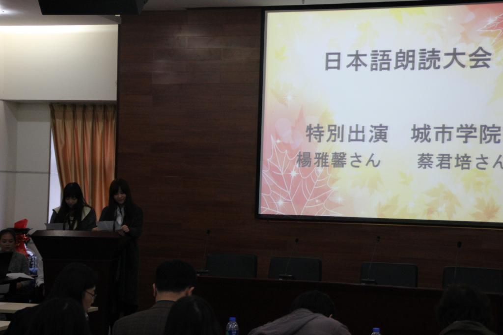 日语系的同学杨雅馨和蔡君培也友情参演,朗读了一篇文字优美的文章。
