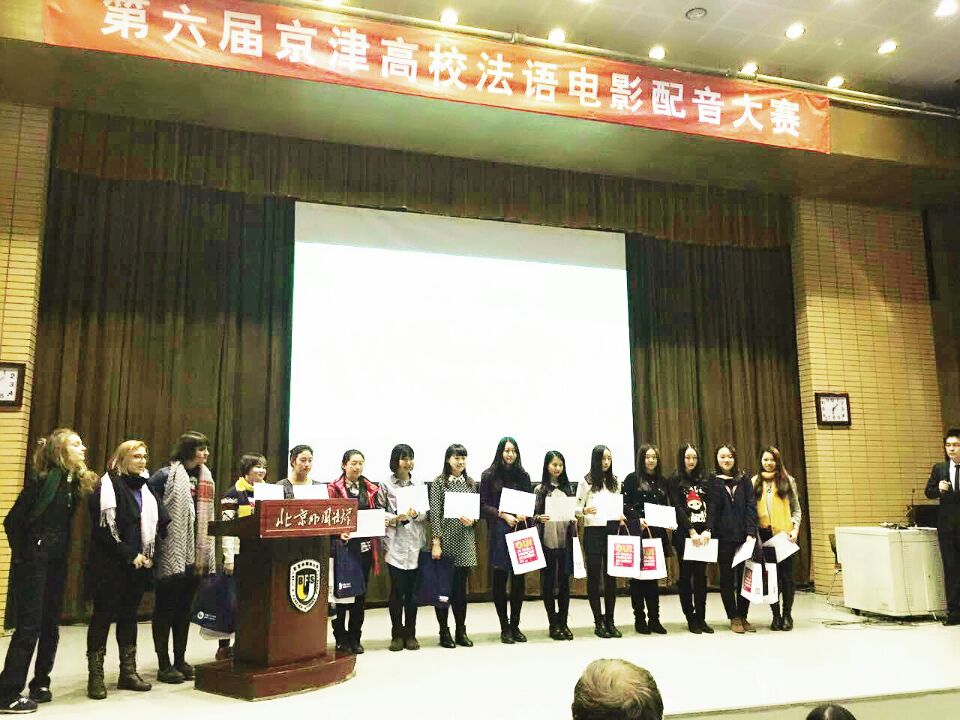 、天津师范大学等13所高校,共22组选手参加了比赛。我校法语系派出了两支参赛队伍,分别是李金梦、宋莹、赵辰阳组和韩涵、韩晓彤、滕钰组。经过激烈角逐,最终我校韩涵、韩晓彤、滕钰组获得了本次法语电影配音大赛三等奖。
