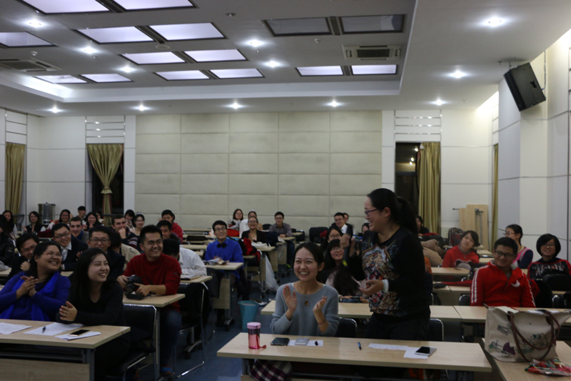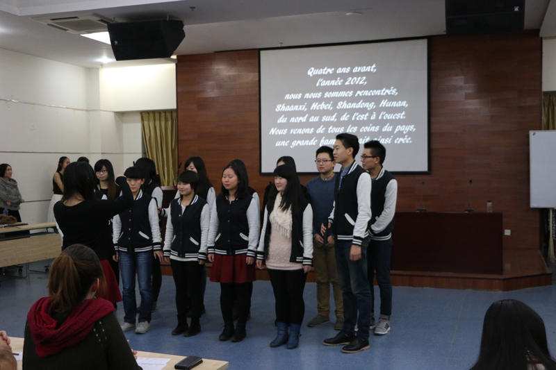 在游戏过程中,王奕老师动人的歌声,外籍同学积极的参与都使得此次活动增添了更多的色彩。在统计分数,等待比赛结果的时候,中法四加四的研究生为大家带来了吉他独奏《River follows in you》,舒缓优美的音乐使得等待结果的选手们放松了不少,而外籍教师Clément的精彩演唱也将此次风采大赛推向另一个高潮。