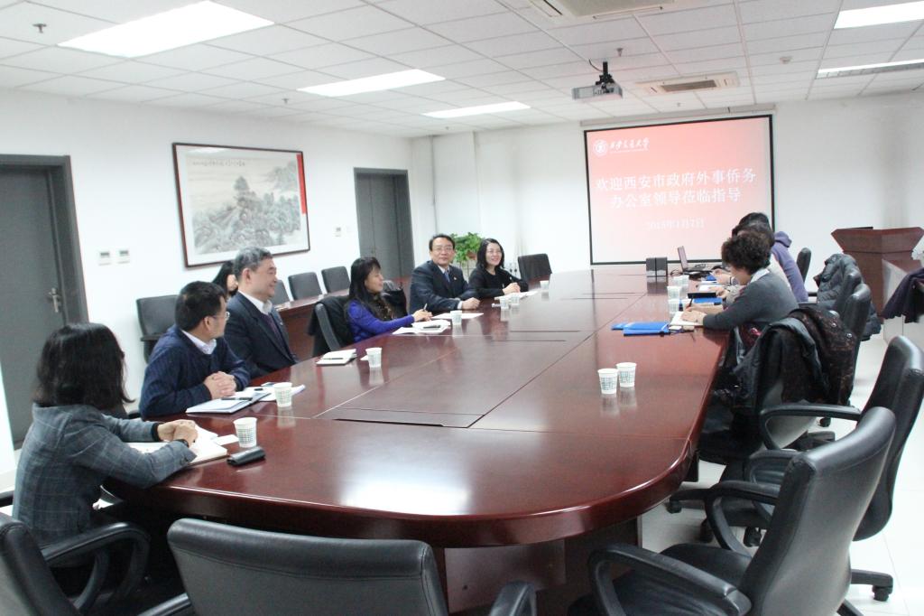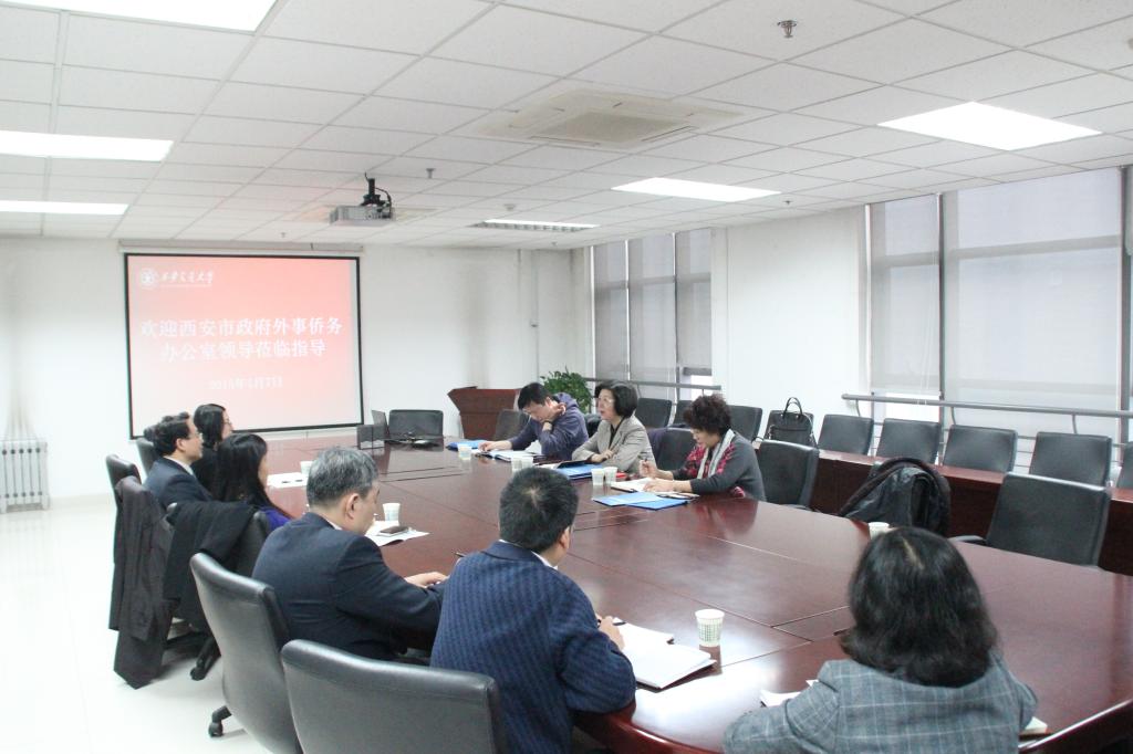 接待西安市外侨办梁晚晴主任,市人民对外友好协会专职副会长蔡兰芳,市外侨办礼宾处副处长杨桢一行,座谈交流并洽谈合作事宜。校党委常委、副校长席光出席座谈会,校国际合作与交流处副处长钞秋玲,pg电子(中国)官方网站