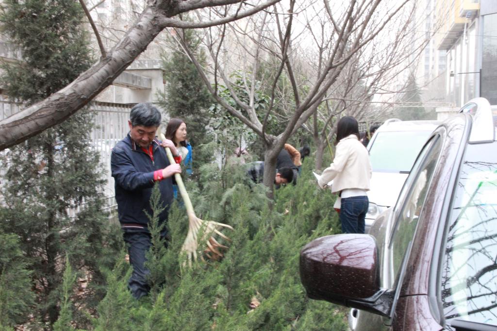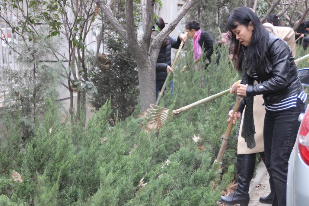 院长陈向京,分党委副书记、副院长张长安,副院长王敏带头亲自上阵,深入花坛内部,清理长久堆积的落叶和垃圾,全身沾满泥土也毫不在意,辛勤劳作,展现了领导不怕苦,肯实干的优良作风,让大家倍受鼓舞。大家都不顾尘土落叶飞扬,深入花坛,热火朝天的开启清扫模式。经过师生辛勤劳作,落叶和灰尘遍布的花坛焕然一新。