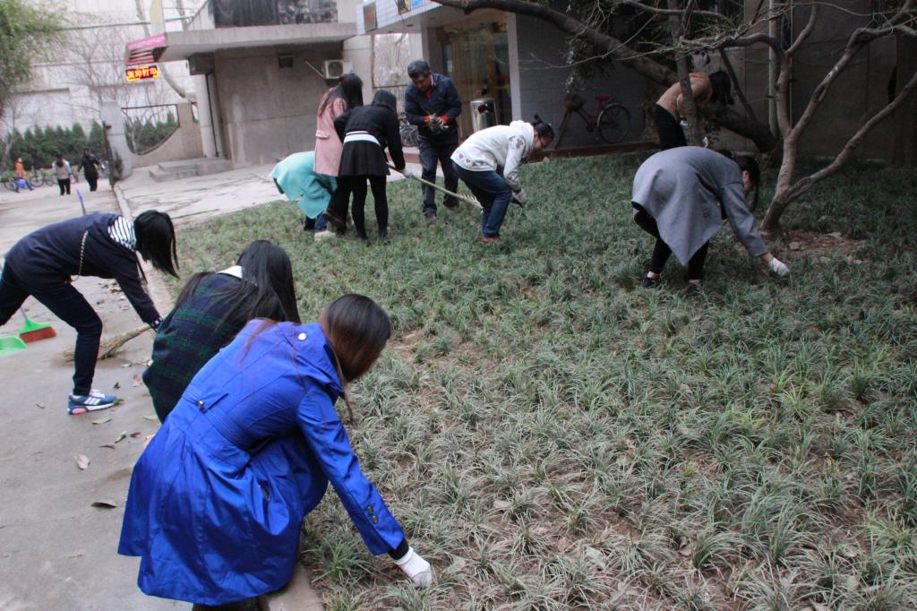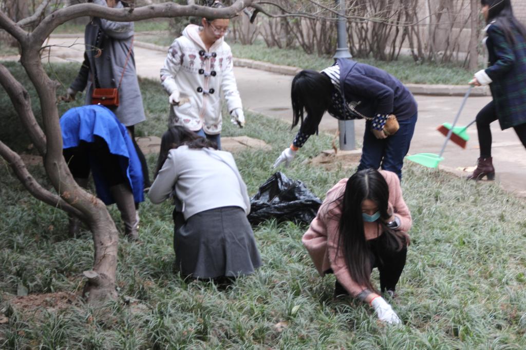 硕2015级党支部学生党员来到西二宿舍楼下,对那里的草坪进行了彻底的清理,扫除落叶,拣出石块,捡拾垃圾和断掉的树枝,所有成员都争先恐后地参与到这项集体劳动中。西二宿舍楼前后的两片草坪面积很大,枯枝、落叶、砖块、垃圾也很多,任务十分艰巨,但是大家没有敷衍了事,而是勤勤恳恳,认真打扫每一寸草坪。劳动工具不够,或者为了更好的保护绿油油的草坪,大家就直接用手捡拾垃圾和落叶。期间因任务重,人数少,公管pg电子官网