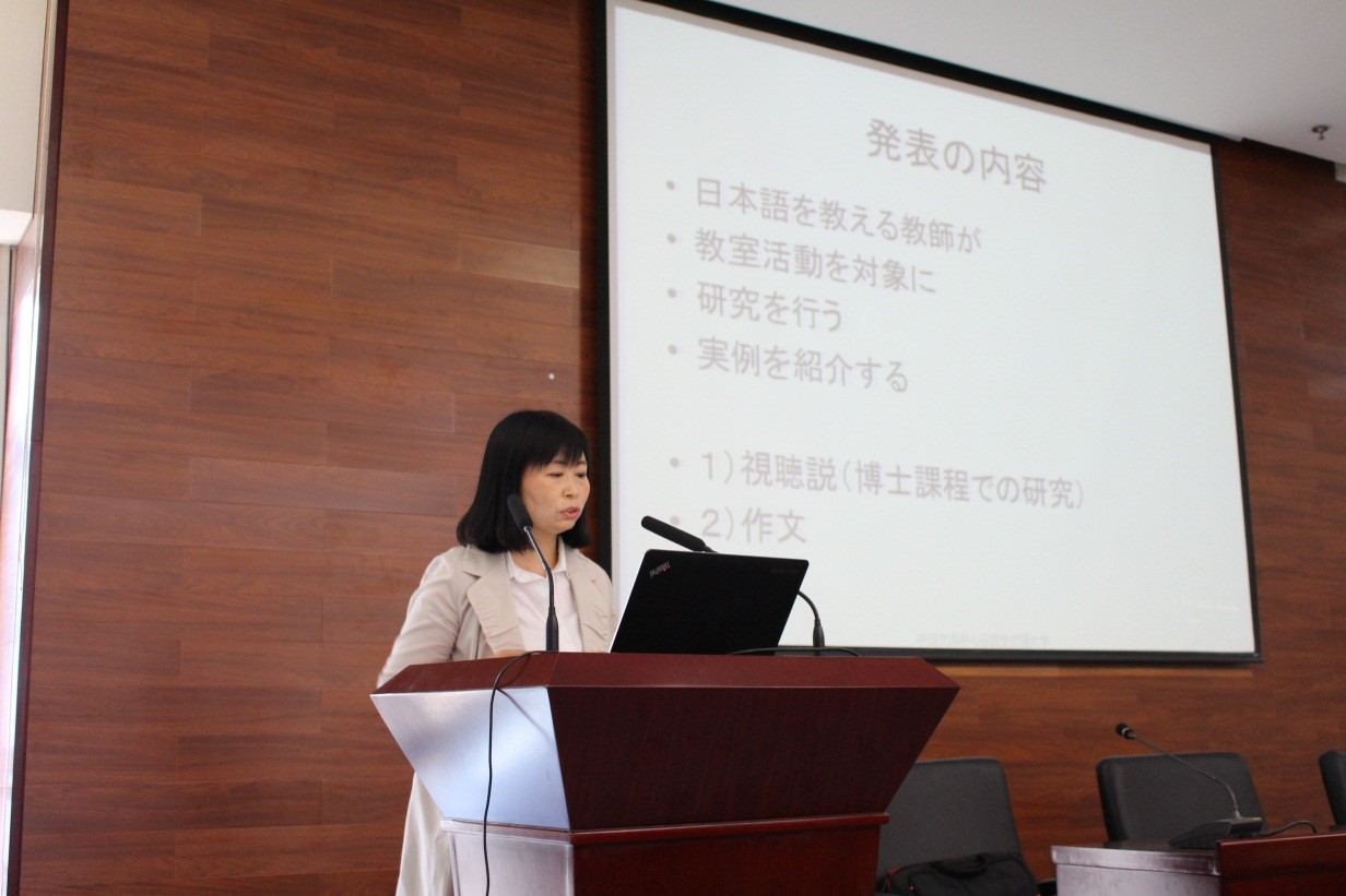 张文丽老师根据自己日语教学研究,分享了有关视听说课程以及写作课程的教学经验。在关于视听说课程的教学研究中,张老师提出“日语学习者通过看日剧能否提高日语水平”的疑问,并就此疑问进行了实验调查。研讨会中,张老师详细地介绍了自己所进行的实验及实验成果。她指出在第二语言学习过程中,除了“已知信息”外,暗示的“隐藏信息”也很重要。同时,她还提出学生互改作文也是提高日语能力的一种方法。观点新颖,引人思考。