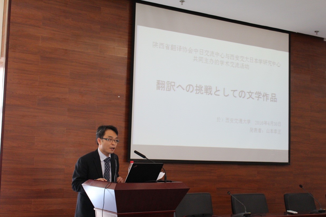 日籍教师山本幸正先生以《翻訳への挑戦としての文学作品》为题,做了精彩演讲。他以夏目漱石的作品《吾輩は猫である》为例,阐述了作品名称翻译的多种方式。同时,他还就井上靖的作品《孔子》中有关人称代词的翻译方法,进一步引出翻译的多样性,并提出“文学翻译不仅要符合原文故事设定及语境,更要考虑作家的个人经历、兴趣、爱好以及创作背景等多种因素”的观点。山本老师的这一见解令人深思,引起了大多数与会者的共鸣。随后他还就村上春树翻译的美国文学作品以及水村美苗《私小说》的汉译本为例,介绍了翻译中的难点,内容丰富精彩,引人入胜。最后,山本老师希望通过文学作品的汉日互译,能促进中日两国间的相互了解,使其迈入一个新阶段。