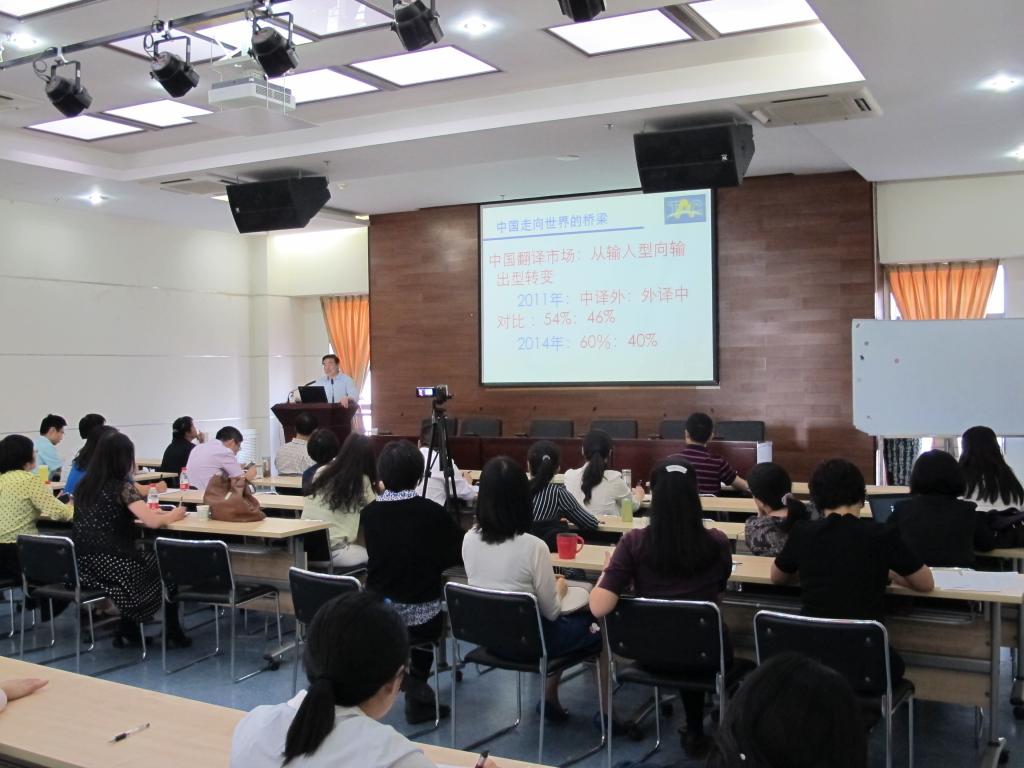 主办的“外国语言文化论坛”第七十二讲于逸夫外文楼1001报告厅成功举办。国务院学位委员会委员、中国翻译协会常务副会长、中国翻译研究院副院长、全国翻译资格(水平)考试英语专家委员会主任黄友义教授应邀担任主讲。pg电子(中国)官方网站