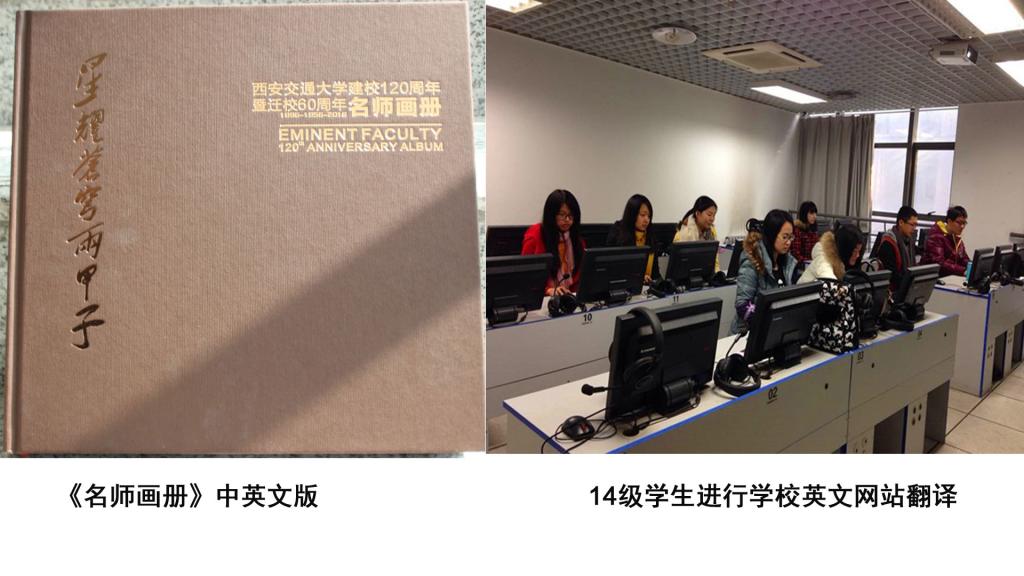 、彭康书院等,这项工作从校庆前一年开始,一直持续到校庆前后,MTI师生完成了总计数万字的汉英翻译,为世界打开了一扇扇了解交大、走进交大的窗口。