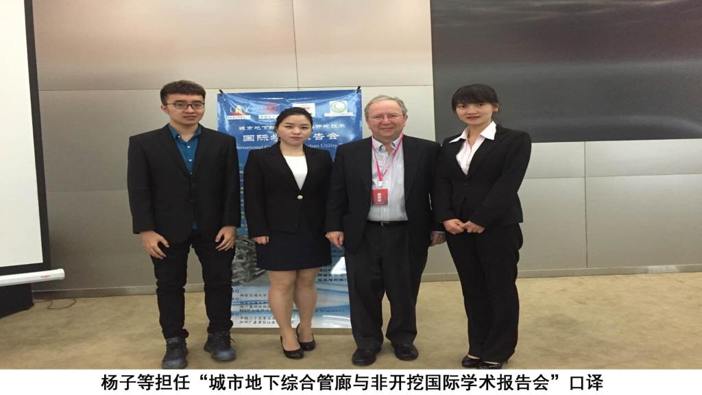 MTI教育中心的研究生也为校庆提供了大量会见及讲座的口译服务,总时长超过50小时。其中,15级研究生宓益群、张阳两位同学在《城市地下综合管廊与非开挖国际学术报告会》担任口译员,他们译前准备充分,现场从容面对,圆满完成了任务。