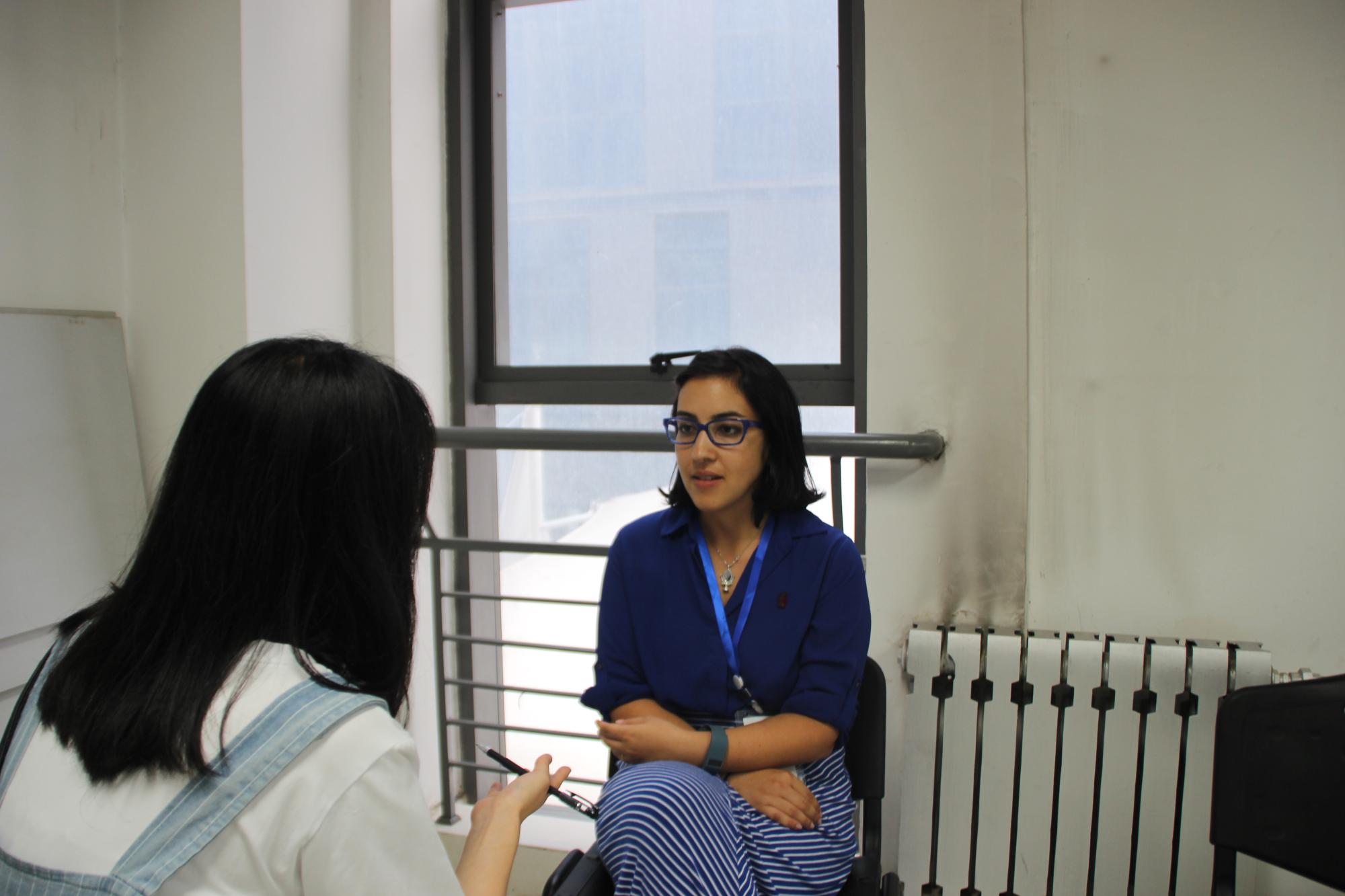 在巴西老师Mirella的课堂上,学生可以自由选择感兴趣的讨论话题,授课重点在于会话、交流以及发音训练。Mirella认为中国学生学习英语最大的问题在于“说”,他们的读写能力很优秀,但口语交流方面稍显薄弱,因此“让学生多说”是她教课的重点内容。运用交际教学法和以学生为中心的课堂模式,Mirella主动“让权”,弱化自己的角色,让学生负责课堂活动的组织和实施,从而强化学生的责任,提高学生的参与度。Mirella说到,在第一节课上学生会对此感到些许不安和抵触,也会因为害羞而不敢说话。但在其后的课堂上,他们逐渐开始习惯,有些学生甚至开始喜欢承担各项组织责任,主动说得越来越多,也参与得越来越多。她表示学生们的进步是巨大的,他们在两周后陈述报告中的表现让她感到惊喜,从起初的念稿式报告到如今的演讲式陈述,如此巨大的进步让Mirella自豪不已。Mirella表示,在这两周的上课时间里,学生们的英文书写和长时间保持专注力的能力让她印象深刻,她惊讶于中国学生如此漂亮的英文书写,也对他们能一天5小时持续保持专注度和热情度表示极为赞赏。对于学习英语的建议,Mirella说,英语也不是她的母语,但通过观看英语电影和听英文歌曲等方式,在轻松有趣的氛围里学习英语让她自己受益匪浅,因而这也是她给中国学生学习英语提供的经验建议。
