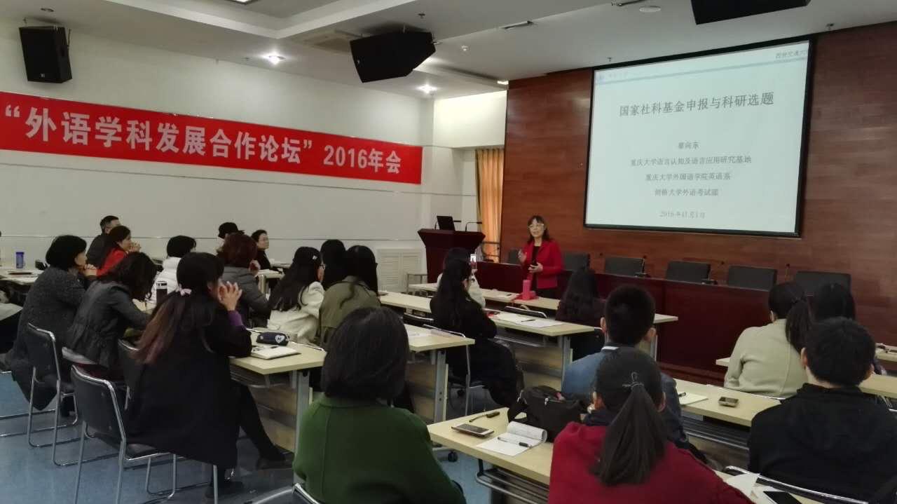 辜向东教授结合多年从事教学与科研工作的经历,讲述申报国家社科基金的体会与感悟,鼓励大家要关注国家大事,并联系自己的专长。辜老师还激励青年教师和学生要享受读书,勤于思考,加强执行力,坚持不懈,追逐梦想,在科学研究和人才培养上终会有所收获。在讲解的过程中,辜老师幽默风趣地穿插一些亲历的故事,使在场听众深受启发。讲座中还针对个人和团队的可持续发展,一线教学中怎样发现研究的点等做了独具特色的阐释。辜教授向大家传递了一种理念和认识:教学、科研、人才培养、团队建设、家庭生活和子女教育等多重角色可以协调平衡并相互促进。