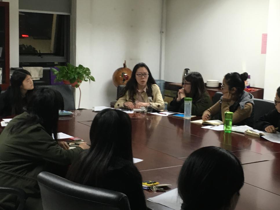 首先,2016级研究生党支部书记贺佳带领大家一起学习了习近平总书记在全国高校思想政治工作会议上的讲话,并详细解读了高校思想政治工作关系高校培养什么样的人、如何培养人以及为谁培养人这个根本问题。在学习过程中,大家提到了教师在这个过程中所发挥的重要作用,许明老师和马薇老师分别分享了自己的感悟。马老师认为,作为老师,不仅要教学科研,还要“育人”,规范自己的言行,从而对学生产生积极的影响;许明老师谈到,教师作为传道者自己首先要明道、信道,要坚持教育者先受教育,加强“师德师风”建设,通过言传身教给学生正确引导。