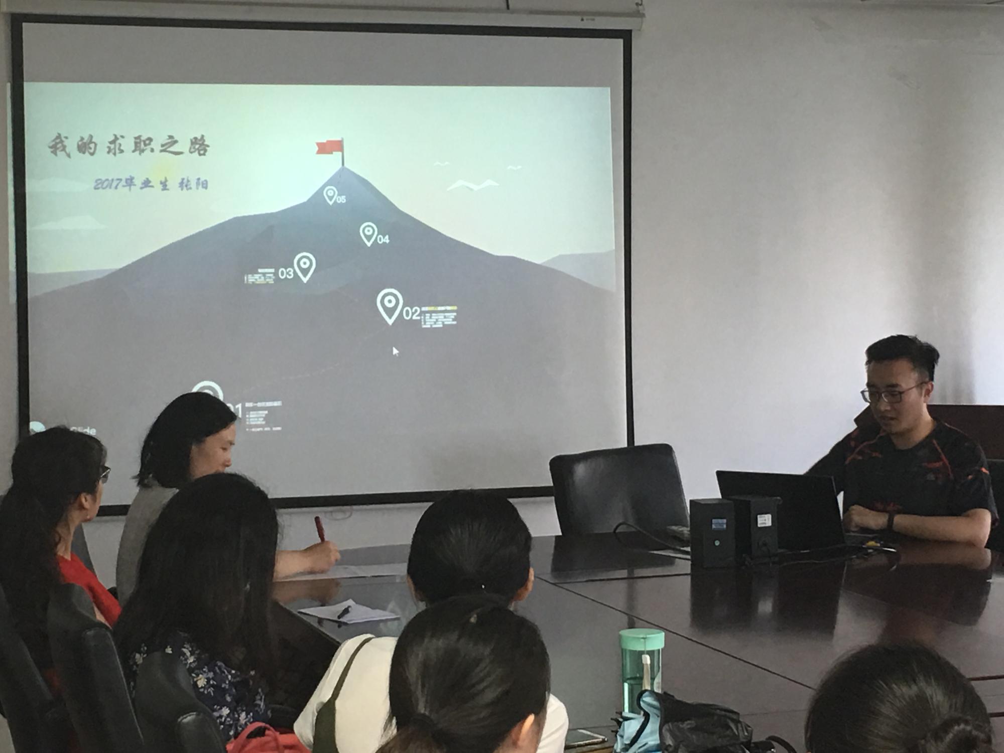 在逸夫外文楼B912会议室举办研究生就业、深造经验交流会。来自我院各硕士专业的9位2017届优秀毕业生,针对今年的就业及考博形势,与2015、2016级研究生分享了自己的就业、考博经历与感悟,会议由研究生辅导员马薇老师主持。