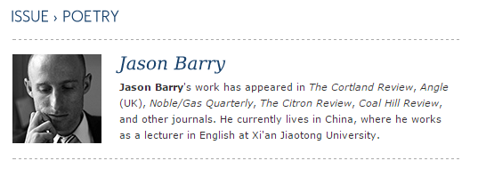 近日,Jason老师的两首诗作发表于美国的The Cortland Review,下面是截图,随后是他这两首诗的全文。