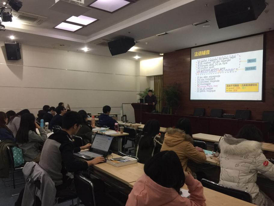 讲座后,法语系同学就自己困惑的发音难点提问,如如何正确发出鼻化元音、如何在朗读一段文章中准确发音等,马老师也给出了具体的建议,如抓住语音特征,切分意群,同时辅以有效的练习等。同学们纷纷反映讲座中给出的发音机理指导及练习方法都非常有针对性,也加强了大家对法语发音的信心。
