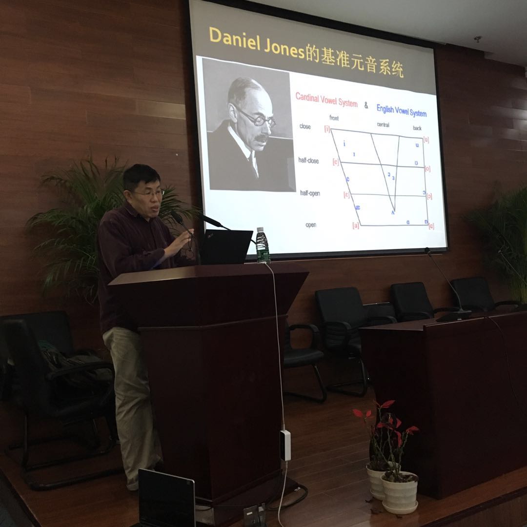 做题为“像母语者一样发音——外语语言学习及正音”的讲座。