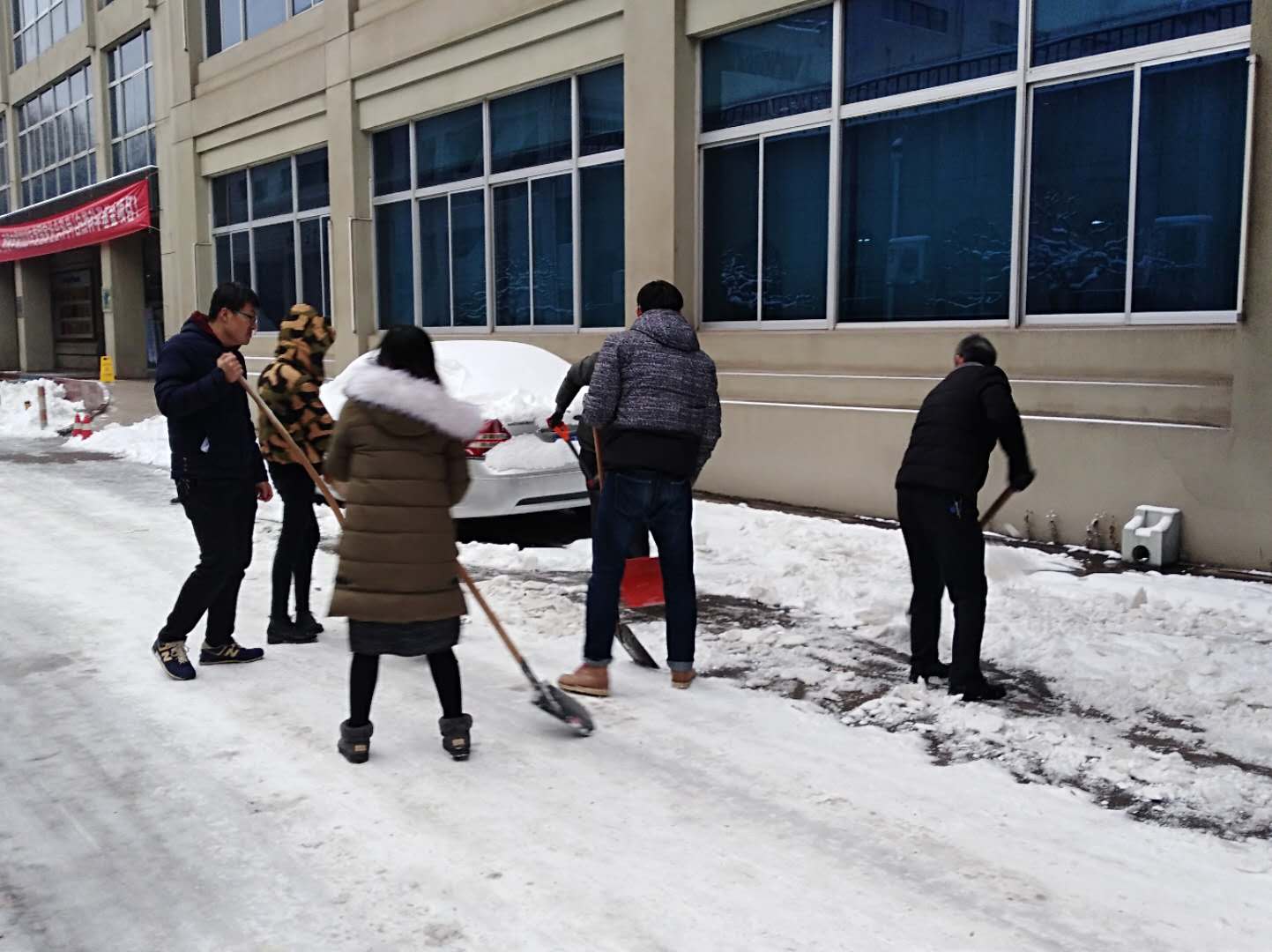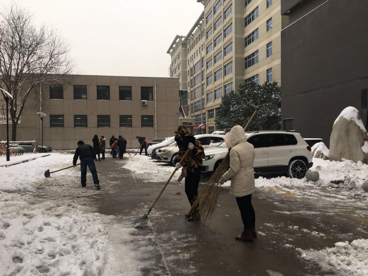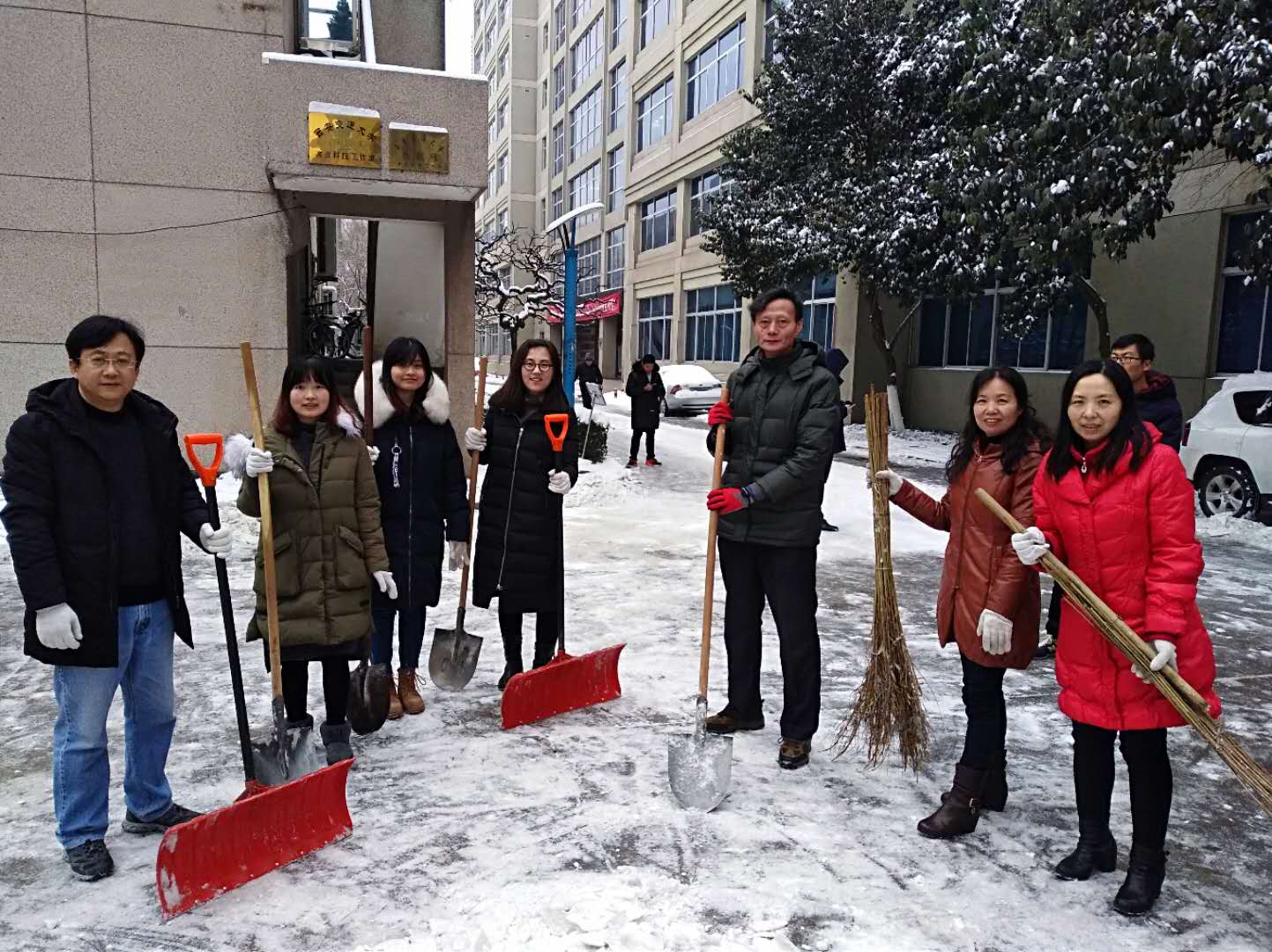 机关党支部、多语种党支部和硕2017级党支部近20名教职工、研究生党员和积极分子义务志愿铲掉并扫除外文楼周边人行道路的冰雪。