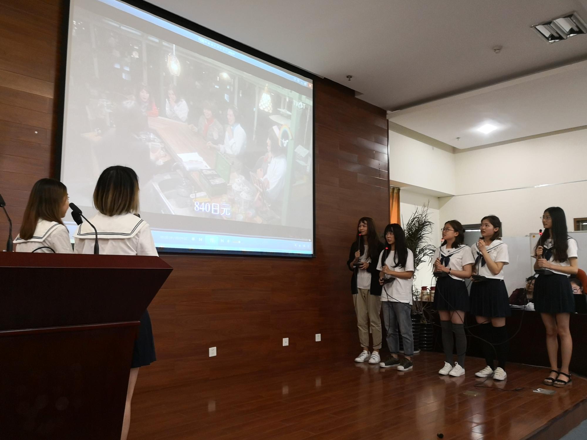 日语系的薛红玲教授担任大赛评委会主席,她介绍此次比赛评分标准,包括人物情感的还原度、声音和影像的一致性、日语发音是否标准、临场反应能力以及选段本身的配音难度等。17只参赛队伍选取日本经典动漫、影视剧片段进行配音。如《进击的巨人》《日常》《胜利即是正义》《四重奏》《问题餐厅》等。大段台词一气呵成,准确还原人物特点;日语发音自然流畅,生动再现故事情节;服装道具精心准备,情感饱满十分投入。选手们的精彩表现赢得了台下观众的阵阵掌声,现场气氛热烈。