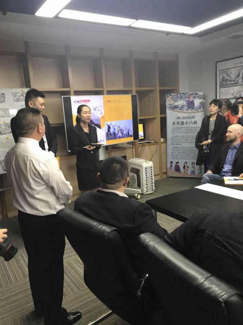 首先,鸿鹰公司为来宾举行了小型介绍会,公司负责人向来宾介绍了企业创立初衷、发展过程、及当前公司的主推平台项目,他们还与来宾分享了鸿鹰公司作为残疾人创业公司的理念。任潇潇进行了全程会议口译,即对主讲人的讲话进行了交替传译。