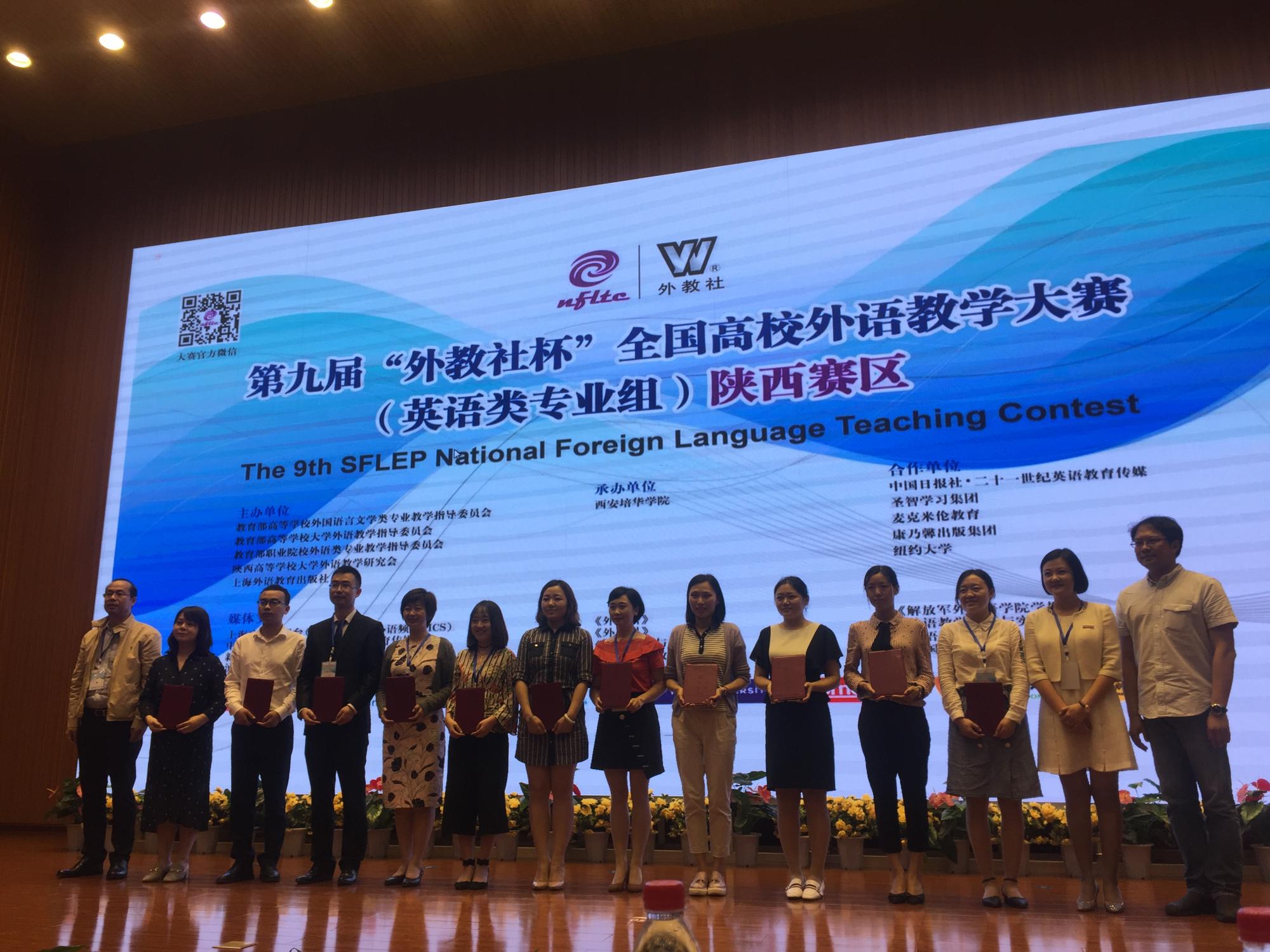 来自陕西省40所高校的43名英语专业教师参加了本次比赛。我院教师张蕾,吴洁莹代表我校参赛。两位老师赛前积极准备,现场稳健发挥,凭借扎实的专业基础和过硬的教学经验,从激烈的复赛中脱颖而出,在更加具有挑战性的决赛中沉着应对,表现优异,充分展现了我院教师的专业素质和教学风采。