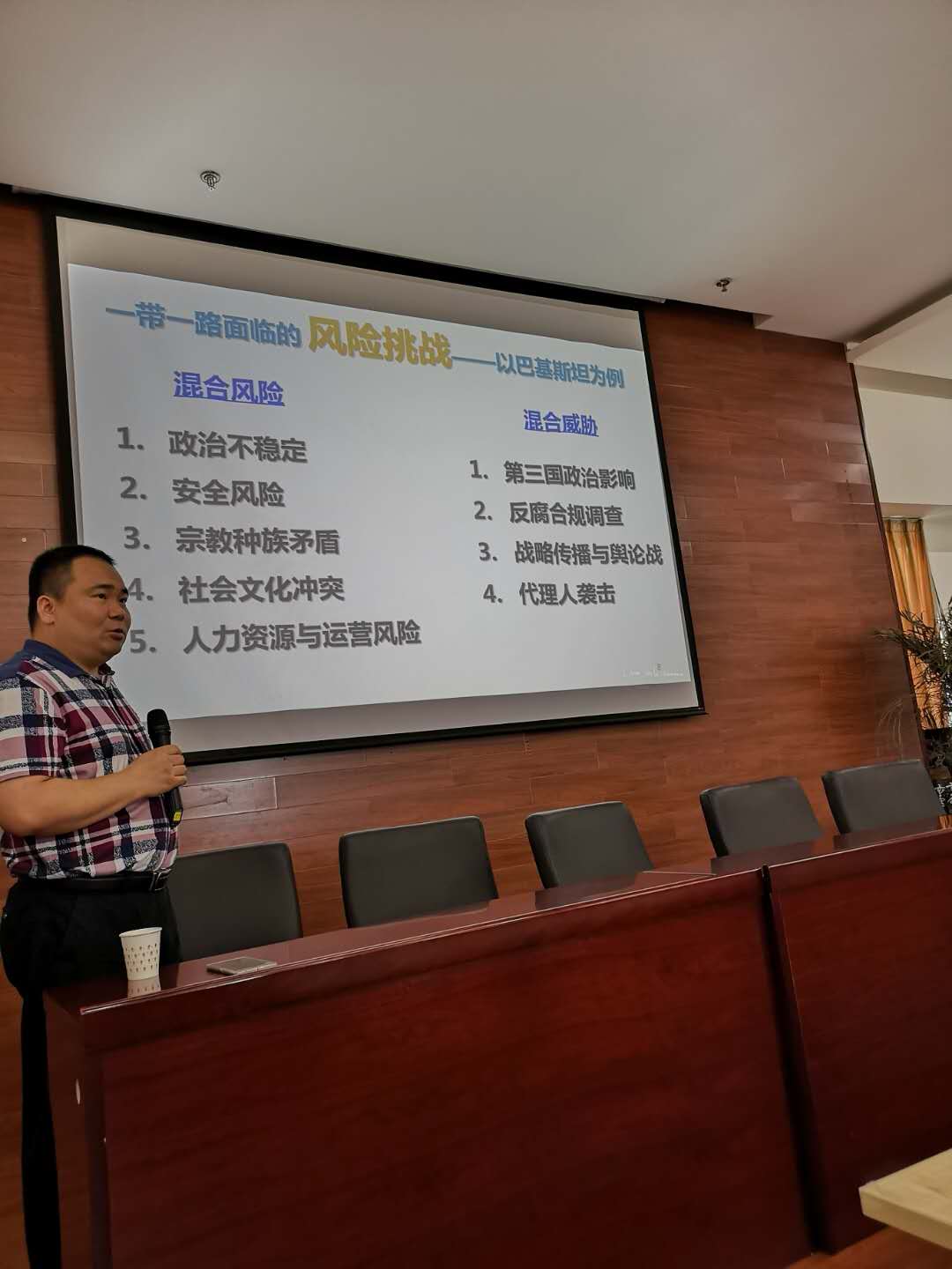 郑刚研究员的报告以问题为导向,由“一带一路”的本质切入,以中巴经济走廊建设为实证研究对象,阐述中国企业走出去所面临的风险挑战。他用大量一手的深度资料和详实的案例,分别从社会文化风险、政治风险、法律合规风险、宗教种族冲突及恐怖袭击几个角度剖析了中国企业近年来在巴基斯坦所面临的“综合风险”。郑刚研究员最后提出了中企风险管控一体化模式,从事前风险评估、保护性情报风险监测到军政商一体化和民心工程搭建,从而全方位改善中企安全生态管理的现状。同时,郑刚研究员指出,由于中国企业的跨文化交际意识十分淡薄,在很大程度上影响了中企的海外投资,甚至提升了风险存在;另一方面,由于缺乏社会文化情报相关知识,企业处置各种危机预判能力严重不足、处置方式简单,缺乏梯次。