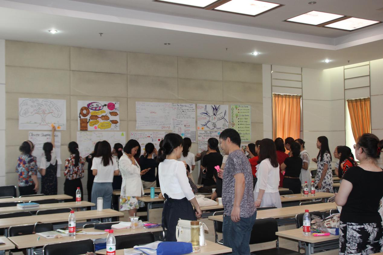 学员们在听取了多场专题报告后,分别进入工作坊,进行小组课程设计,制作海报,并由专家对成果进行点评。
