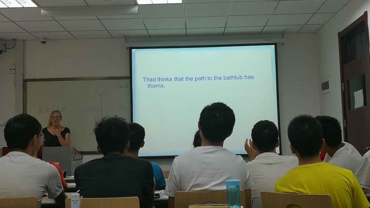 在课堂上,老师Diane和Ms.Luth有多种方式让我们练习口语和听力,包括话题讨论、游戏互动、观看视频、小组报告等等。这种十分轻松的环境,反而往往可以有意想不到的结果——甚至下了课之后,我和同学甚至在路上也会意犹未尽地用英语一言一语地交谈,可以说外教课给我们课余时间也提供了进步的空间,并且带来了诸多欢乐。