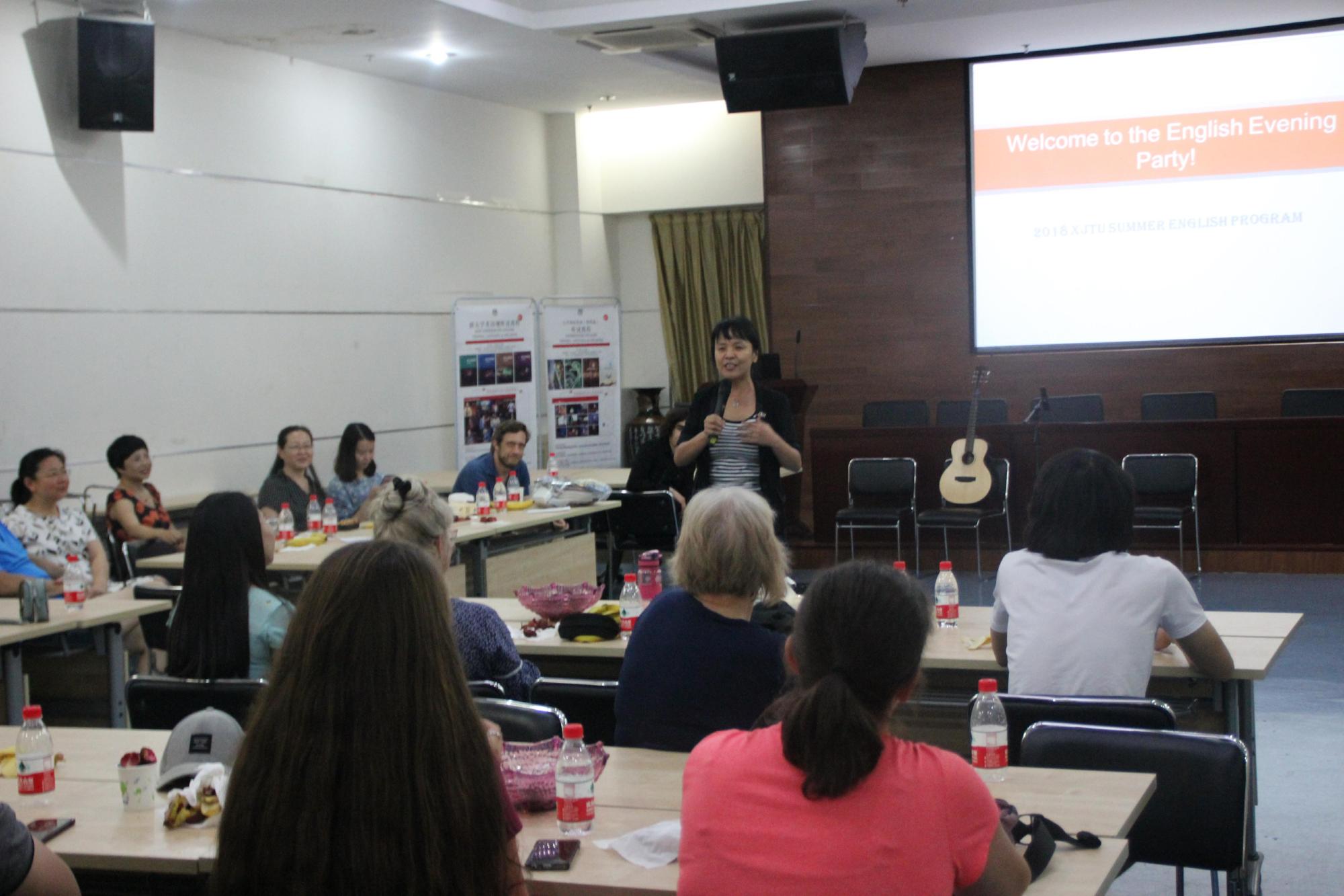 小学期英语晚会在外文楼B1001举行。现场气氛热烈,精彩纷呈,充分为外教和学生助教提供了交流展示的机会。