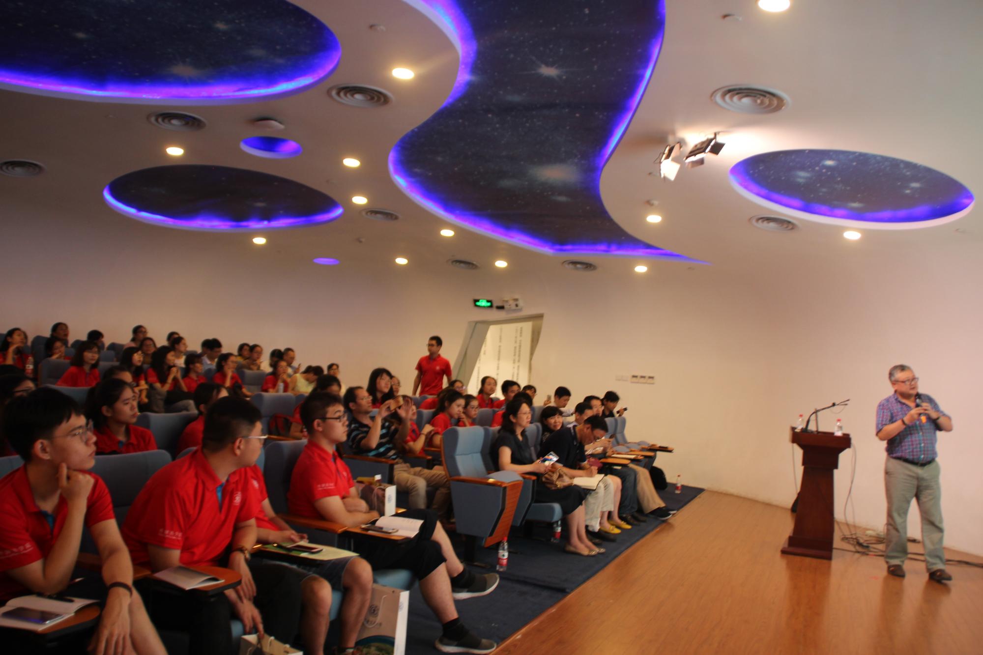 18日下午,营员们在钱学森图书馆星空报告厅聆听了两场讲座。首先,曾任中国驻波兰、意大利、印度、阿富汗等国特命全权大使、外交部阿富汗事务特使、外交部发言人孙玉玺做了以“解谜外交部新闻发言人—谈美国轰炸中国驻南斯拉夫大使馆谈判事宜”为题的讲座,带领大家一起走进了外交官的真实生活。接下来,国际世界语pg电子官网