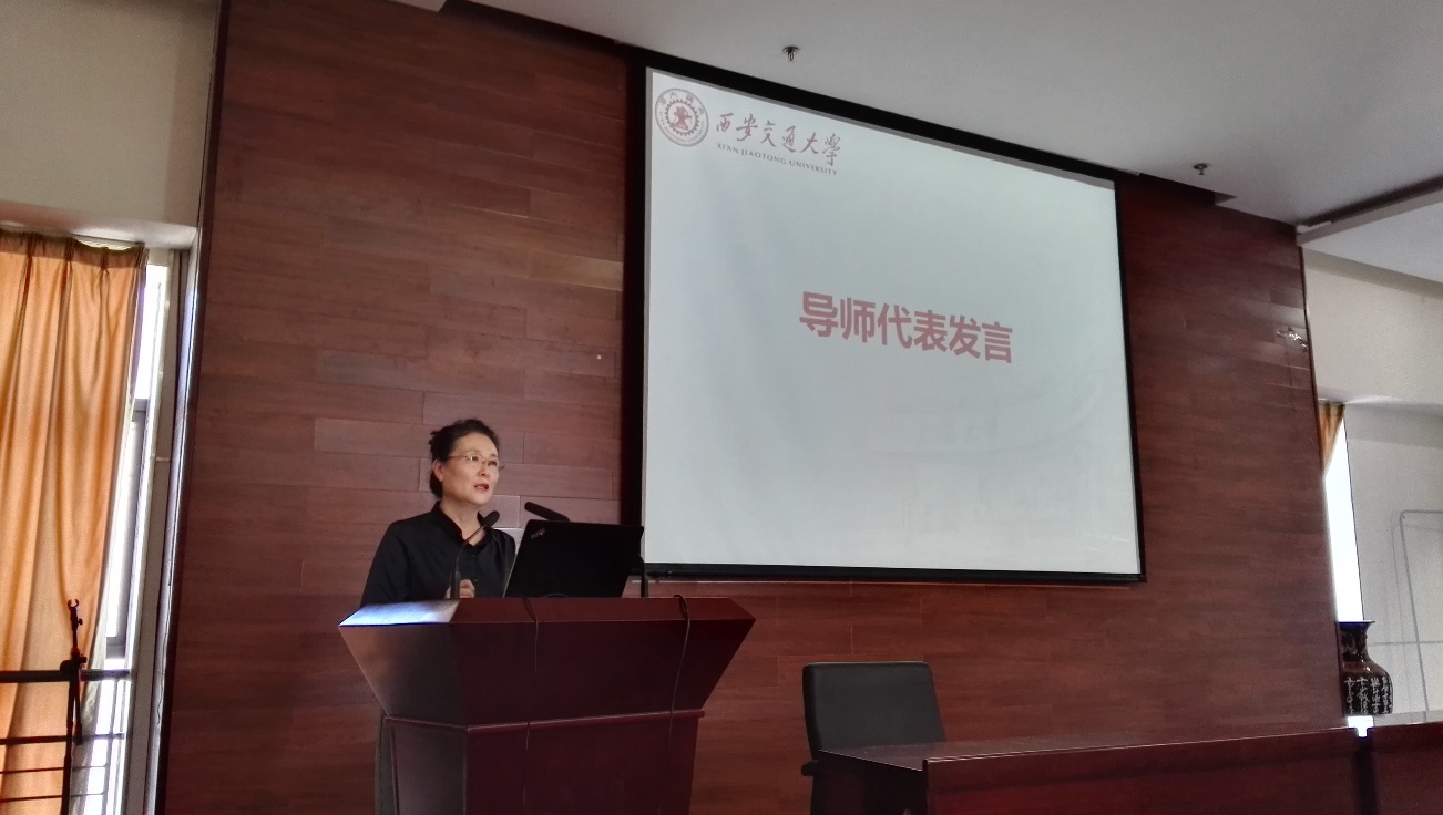 紧接着,马晓梅教授代表研究生导师进行发言。马晓梅教授重点提出年轻人首先要学会做人,再学会做事。她讲道:一个人,始终要以做人为先才能在社会中立足。作为教育经验丰富的教授,她希望每位同学都能踏踏实实做事,老老实实做人,不仅在未来的科研道路上要如此,在未来的人生道路上更要始终保持这种理念。同时,马晓梅教授也希望同学们在未来的科研道路上勤思考、多钻研,让研究生生活变得更加充实而有意义。