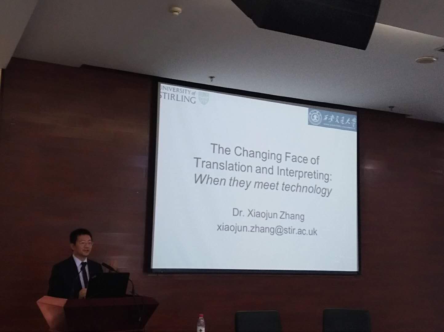 张霄军学者的讲座题目为 “The Changing Face of Translation and Interpretation,他从四个方面展开讲座,机器翻译,计算机辅助翻译的工具,口语翻译以及翻译的本土化。他提到机器翻译中的一个重要问题,如何显示出汉语中省去的代词。他还提到计算机辅助翻译的工具,比如:SDL,memo,word fast等。他提到口语翻译的语音识别技术,可以同时进行机器翻译。他最后提到,在产品翻译中,要关注不同国家文化和用户体验,注意翻译的本土化。