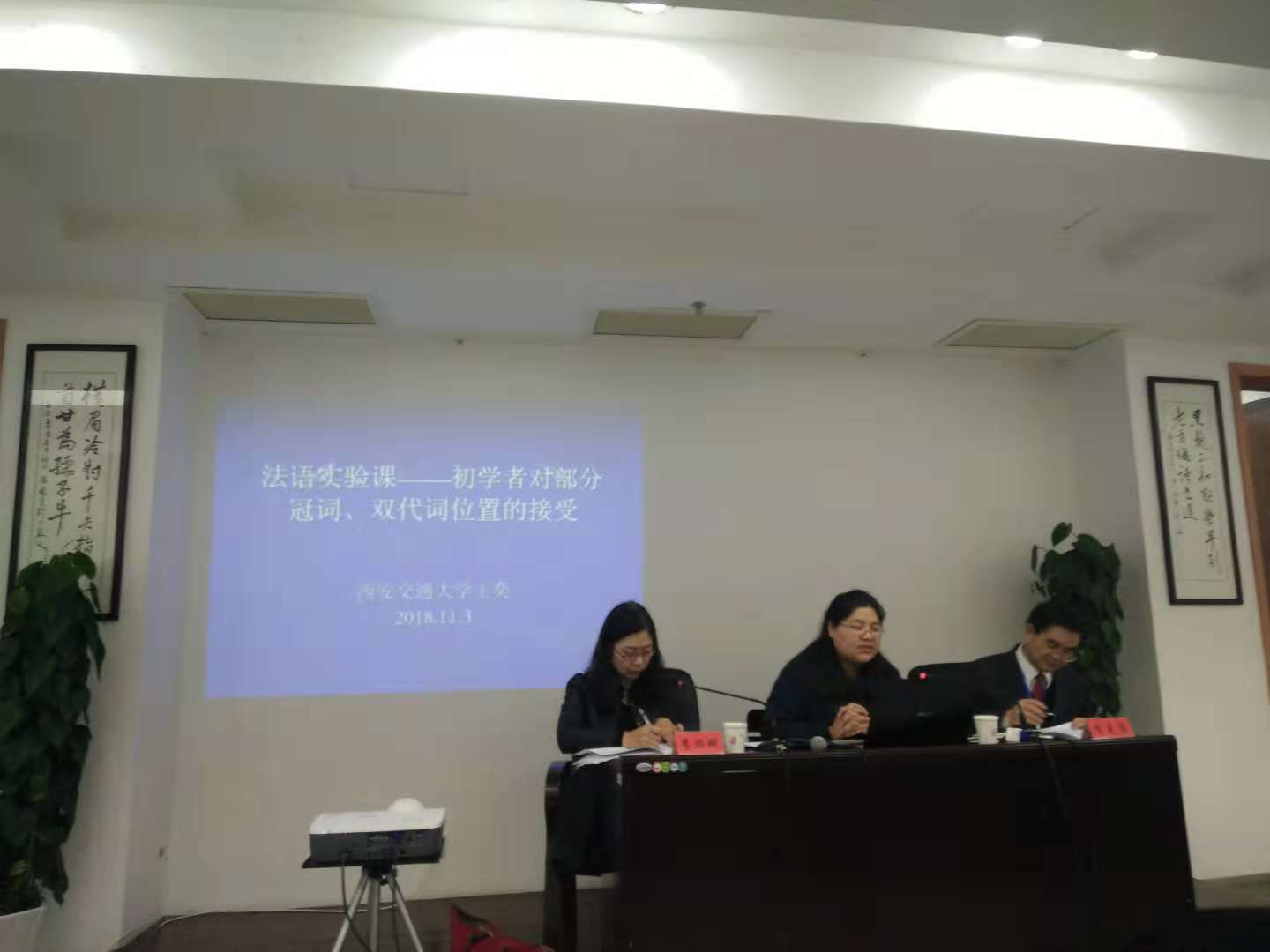 下午的日程是5个分论坛的研讨活动。在第一论坛,我系王奕老师第一个发言,就其法语实验课做了报告:《法语实验课——初学者对部分冠词、双代词位置的接受》。