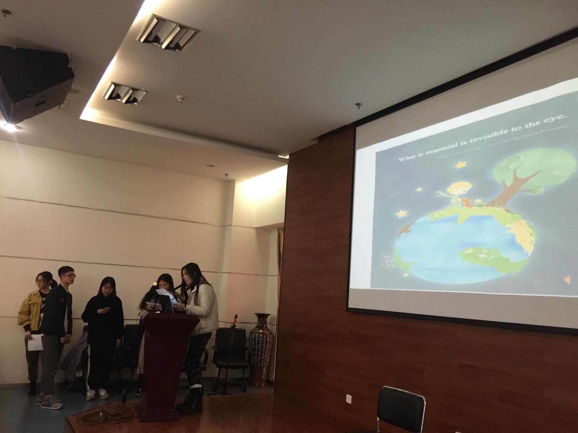 英法81班的同学表演了《小王子》片段。大段台词、清晰标准的语音、巧妙地编排、认真的演绎令人耳目一新。英法班的同学既要学习英语专业的课程又要学习法语专业的课程,在繁重的课业压力下仍然有如此出色的表现真是了不起!