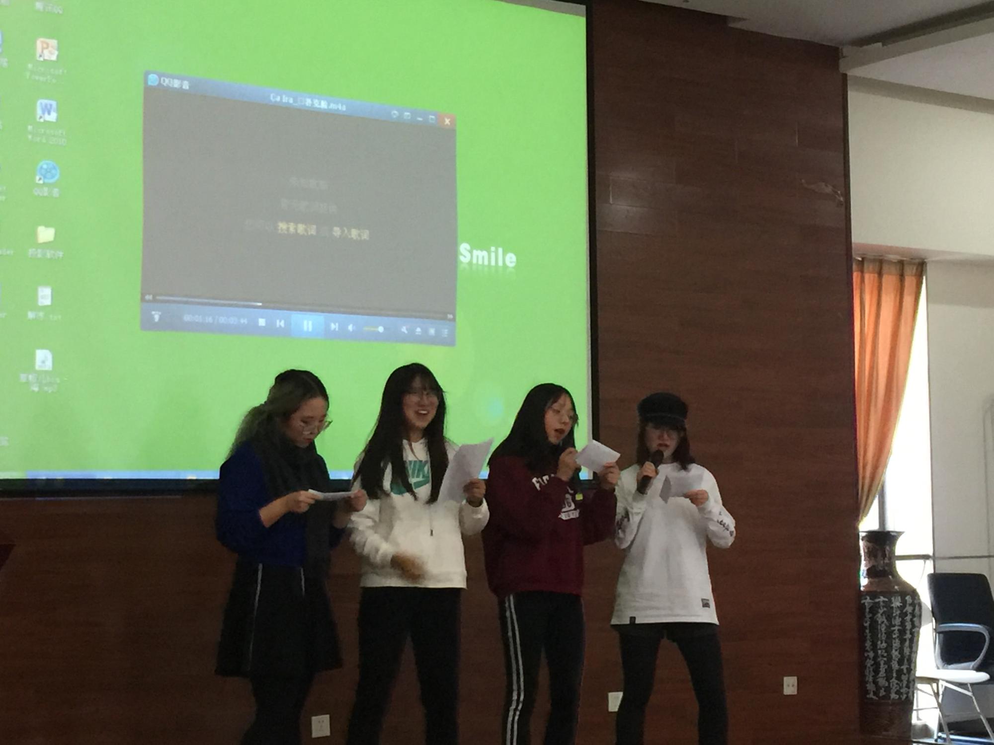 法语71班穆永芳菲、宾逸雪、吕方为、霍云瑶(从右至左)