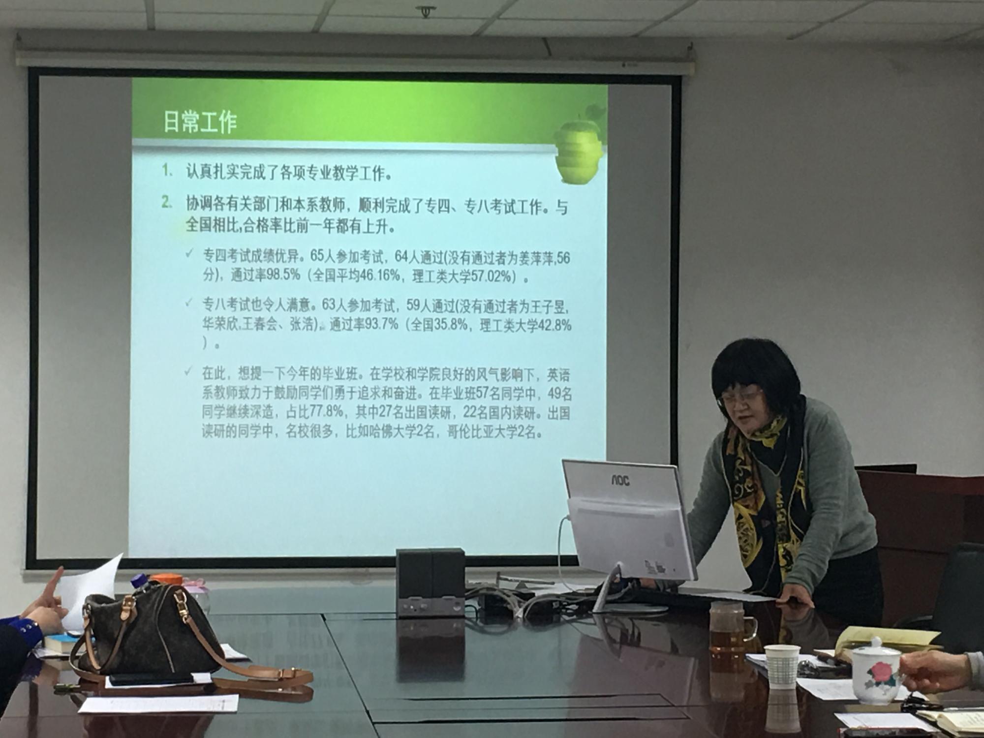 10位系中心主任逐一介绍各系中心2018年度开展工作、取得成绩、存在问题及2019年工作设想,通过介绍常规工作、亮点工作,对2018年教学、科研等各项工作进行总结,同时规划2019年增量工作。“2018年实施的研究生英语教学改革得到了学生的高度评价”研究生英语教学中心主任王华介绍2018年工作时提到。“2018年日语系科研工作、日语慕课都取得了突破性进展,开设日英双语专业”,日语系主任张文丽如是说。除了教学科研工作,英语系主任杜丽霞介绍了英语系2018年首次举办毕业生联欢会,为毕业生送上全系教师签名的贺卡,让学生离校前感受到pg电子官网