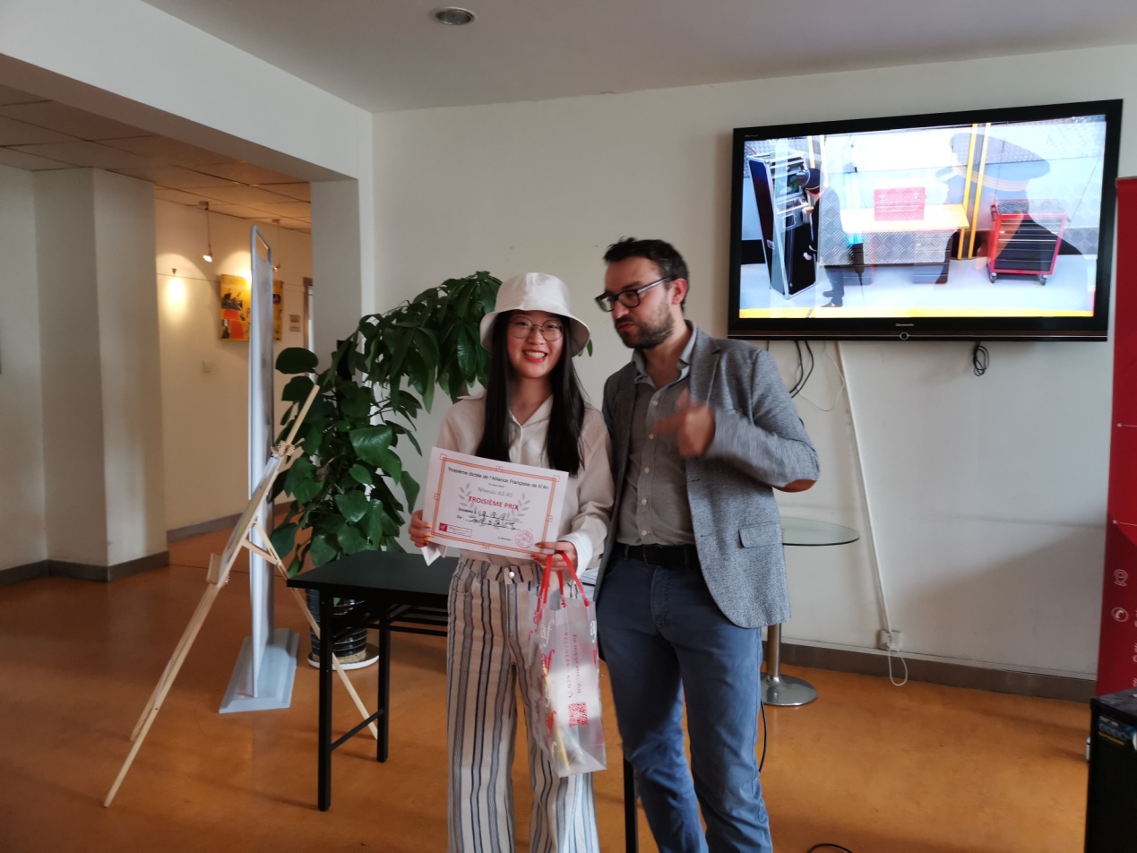 在85名参赛者中,法语系一年级研究生朱丽君获得B2/C1组第三名;二年级(法语71班)本科生朱澄月同学获得了A2/B1组第三名。