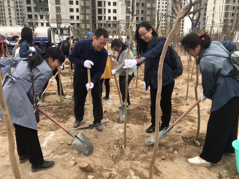 教职工百余人赴创新港开展植树活动,为创新港建设增添春的颜色贡献力量。