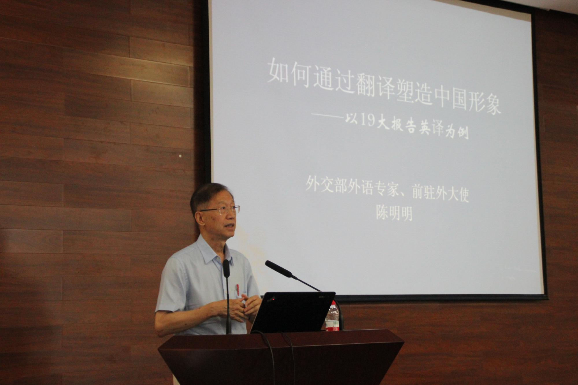 院长王闯博士以“兴趣+自主学习”为题,通过分享自己的求学之路,鼓励营员在兴趣的基础上,树立目标、制定计划并落实行动。曾任外交部翻译室主任及中国驻新西兰、库克群岛、瑞典大使,外交部翻译专家,中国翻译协会副会长陈明明做了“通过翻译塑造中国形象”主题讲座,为营员们讲述了中国政治话语对外传播面临的挑战以及通过准确翻译核心政治概念在国际上树立良好的中国形象。