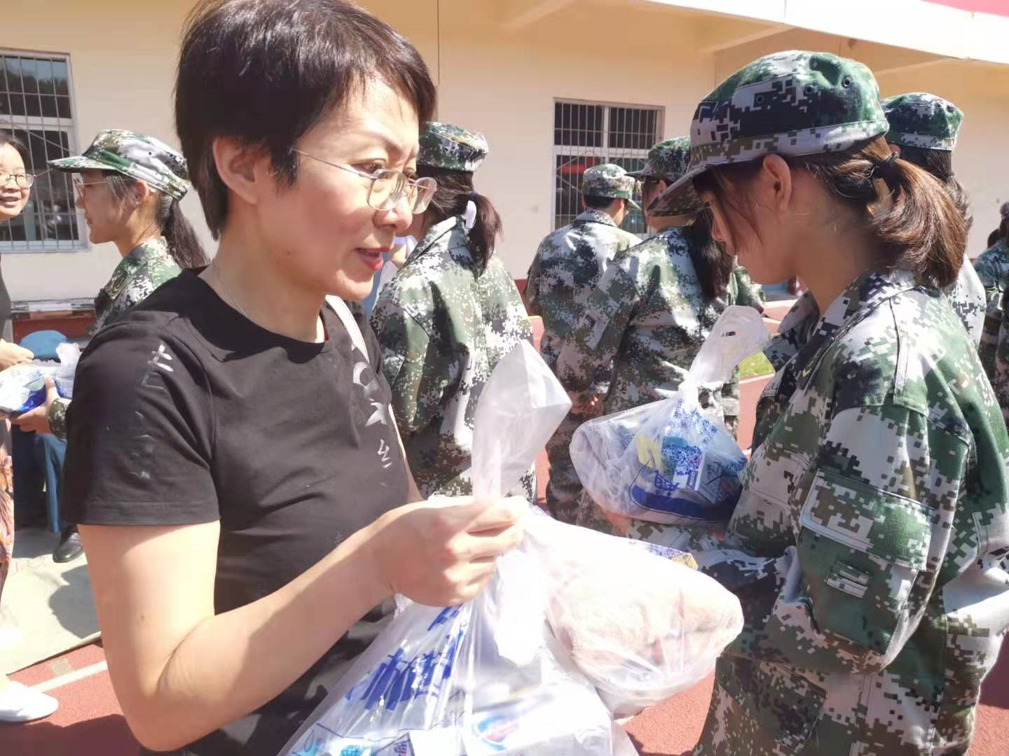 大家庭,她表示尽管军训非常辛苦,但同学们都表现得非常出色,希望同学们在今后的学习和生活中,继续发扬在军训中培养的优秀品质,吃苦耐劳、互相帮助,践行西迁精神,做一个有责任、有担当的优秀大学生。对于即将面临的专业选择问题,许老师鼓励同学们保持良好的心态,不管学习什么专业,只要自己努力,都能为国家、社会做出巨大贡献,也能够很好地发展自己。学习外语有很多其它专业不具备的优势,许老师希望同学们坚定学习外语的信心,在外语学习中不断进步。