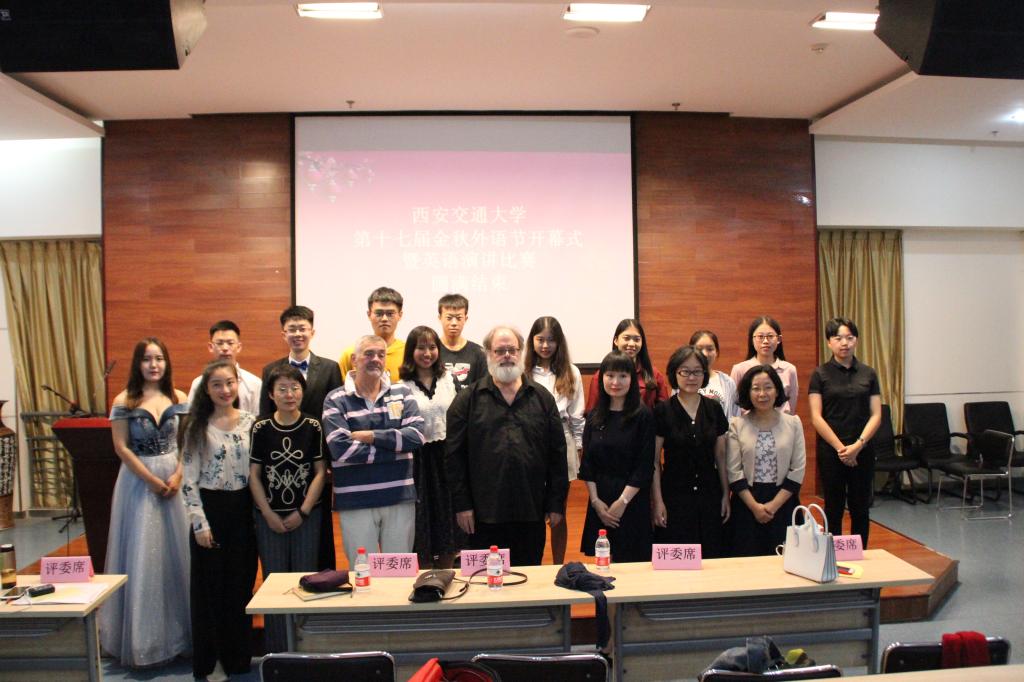 老师范晓晖、刘睿、常虹、李莹、邹郝晶组成,此外还特别邀请到Dr. Charles Kevin Stuart,Dr. Lewis Edward两位外籍教师作为提问嘉宾。经过激烈的竞争,来自ACCA专业的蓝格非以纯正的口音及较高的语言素养在17位参赛者中脱颖而出,并将代表学校参加陕西省外研社杯英语演讲比赛。