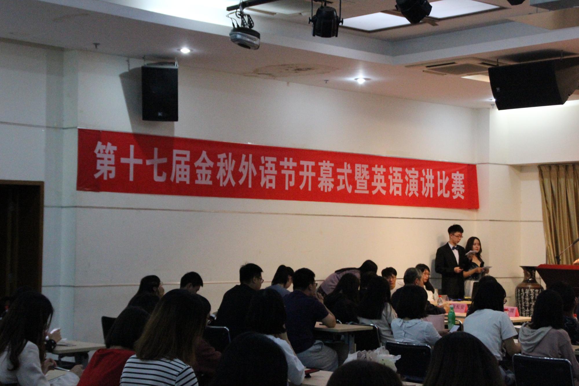9月25日晚,金秋外语节系列活动之“外研社杯”英语演讲比赛在外文楼B1001顺利举行。pg电子(中国)官方网站
