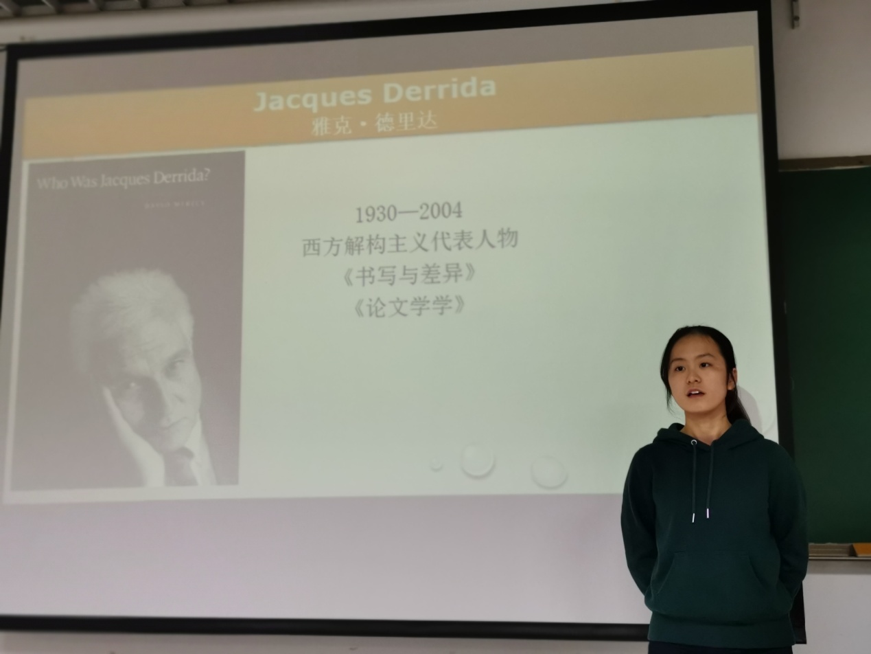 二等奖获得者李思奇同学选择的是解构主义代表人物德里达。法国前总统希拉克曾高度评价德里达对法国思想文化和人类文明作出的贡献。李思奇同学的演讲不流于表面,她挖掘出解构主义哲学理论中与我们生活密切相关的点,给大家带来了一些警示和启示。她的演讲句句直入人心,发人深思。