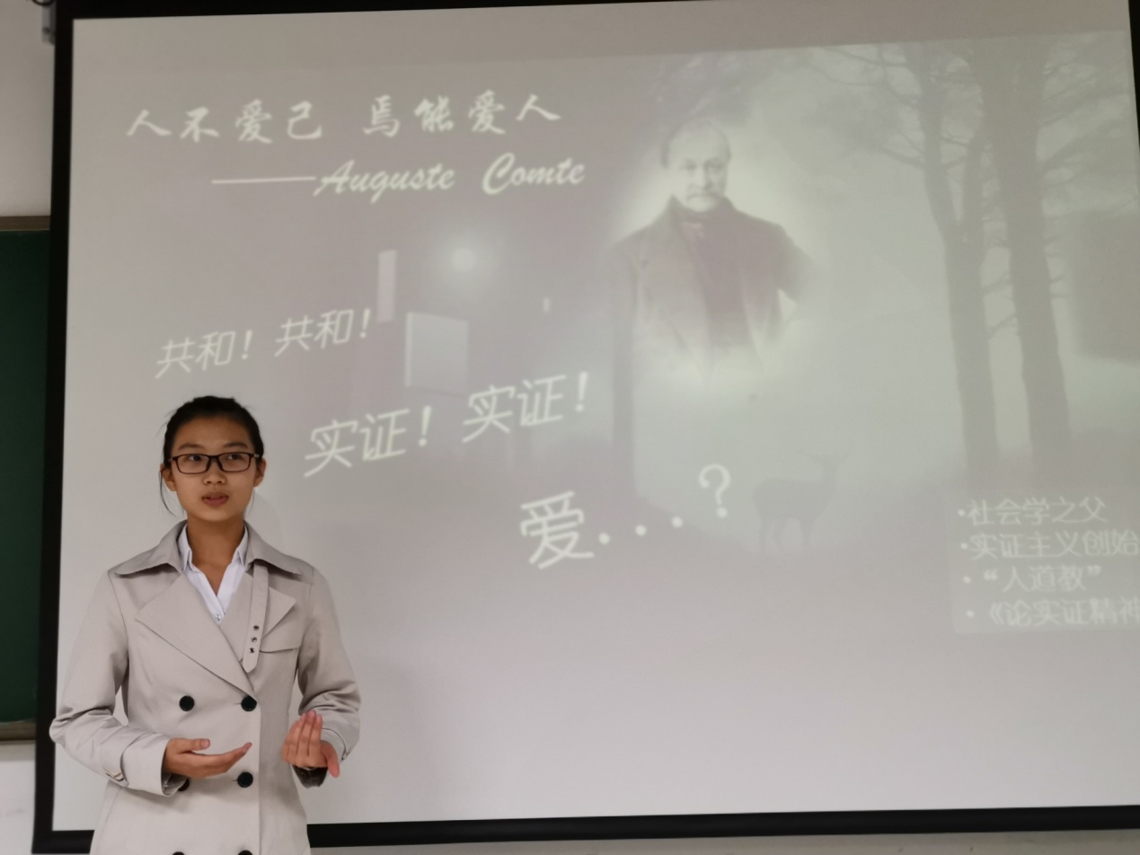 法语81班班风良好,同学们勤奋刻苦,又才华各异,人人争先又团结友爱。参赛的每位选手事先选择了他们感兴趣的法国思想家,然后进行资料汇总、整合,撰写稿件,现场宣讲。