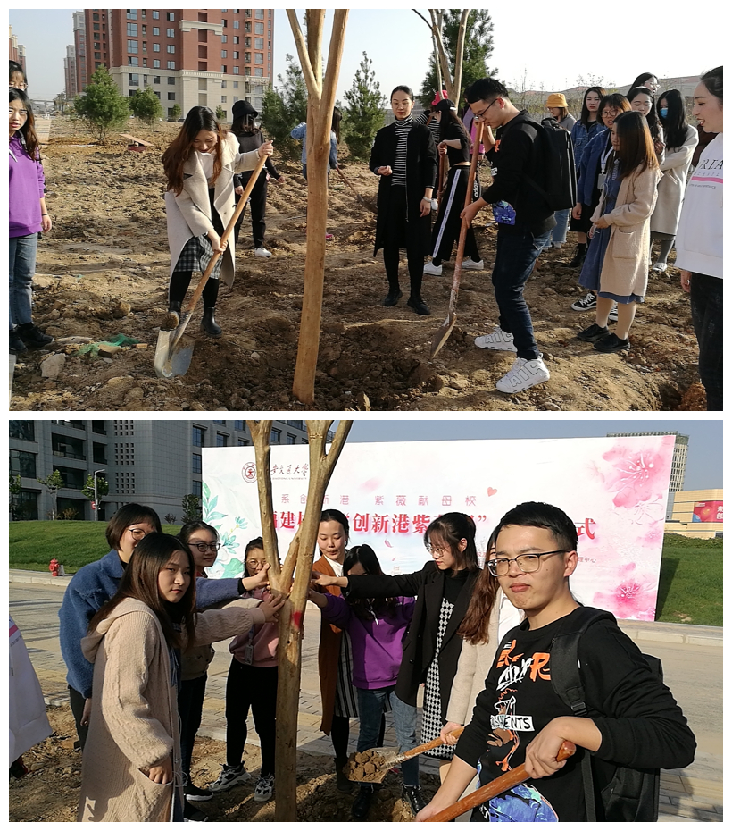 本次活动在捐赠校友代表谢鸿年的讲话中拉开序幕,谢鸿年校友表达了对母校的诚挚祝愿,接着是工会领导和学校领导讲话,他们传达了努力建设创新港的决心和信心,也提出了对创新港新生的殷切希望。最后是全体人员开展植树活动。