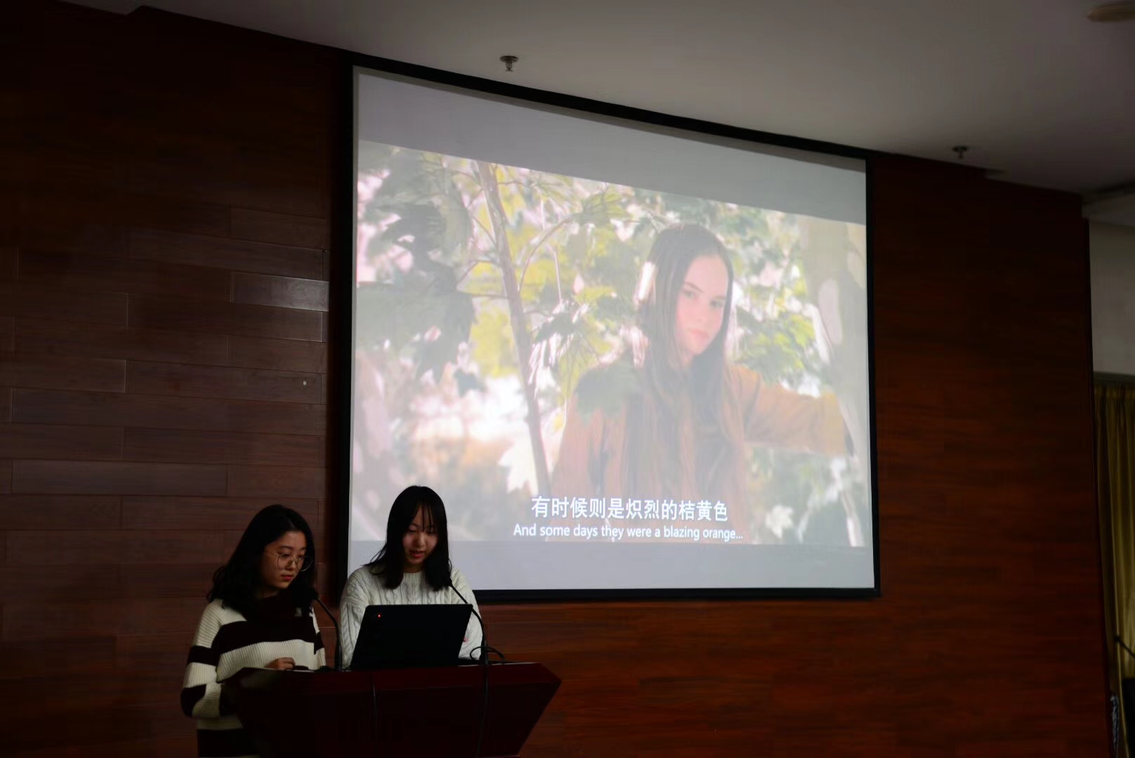 11月29日下午,我院英语系大一学生配音表演赛在逸夫外文楼A1001拉开帷幕。系主任杜丽霞老师和张莉老师、董艳云老师出席比赛,并为获胜者颁奖。英语系大一全体学生与日英91班学生参加活动,承担着观众与评委的双重身份。