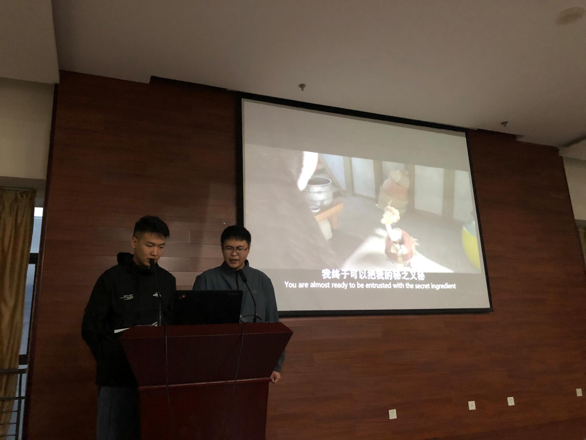 “课程实践”的重要组成部分,是对学生语音、语调及语言流畅度的训练,要求人均配音时长不少于3分钟。因其较高的能力与技巧要求,同学们对此次活动抱有极大的热情。经过班级内部的初次筛选,每班选出两支队伍参加比赛。