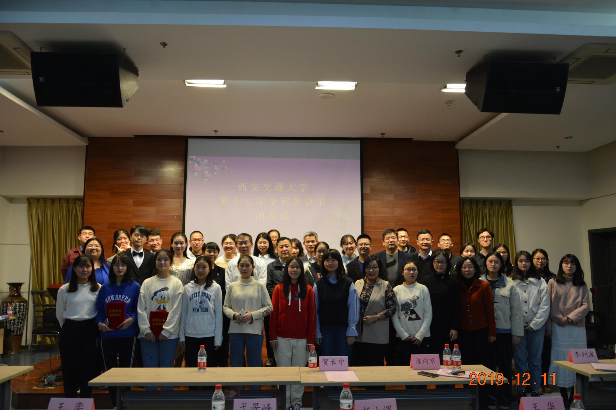 2019年12月11日晚,西安交通大学第十七届金秋外语节闭幕式暨颁奖晚会在西安交通大学兴庆校区逸夫外文楼B座1001室成功举办。教务处、国际处、彭康书院、学工部、校团委、校工会的各位领导以及pg电子(中国)官方网站