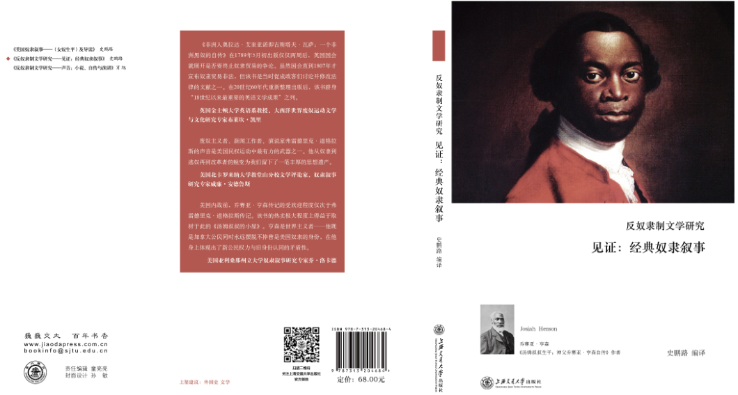 教师史鹏路和亚利桑那州立大学乔·洛卡德教授(Joe Lockard)主编的《反奴隶制文学研究》第二册《见证:经典奴隶叙事》和第三册《声音:小说、自传与演讲》由上海交通大学出版社正式出版。美国奴隶叙事研究领军人物威廉·L·安德鲁斯教授(William L. Andrews)为新书出版作序。项目国际合作方乔·洛卡德教授为系列丛书作总序。